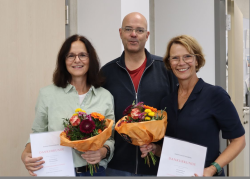 Im Rahmen einer Gesamtlehrerkonferenz und vor großem Publikum ehrte Schulleiter Werner Franz zwei sehr beliebte und verdiente Kolleginnen.
