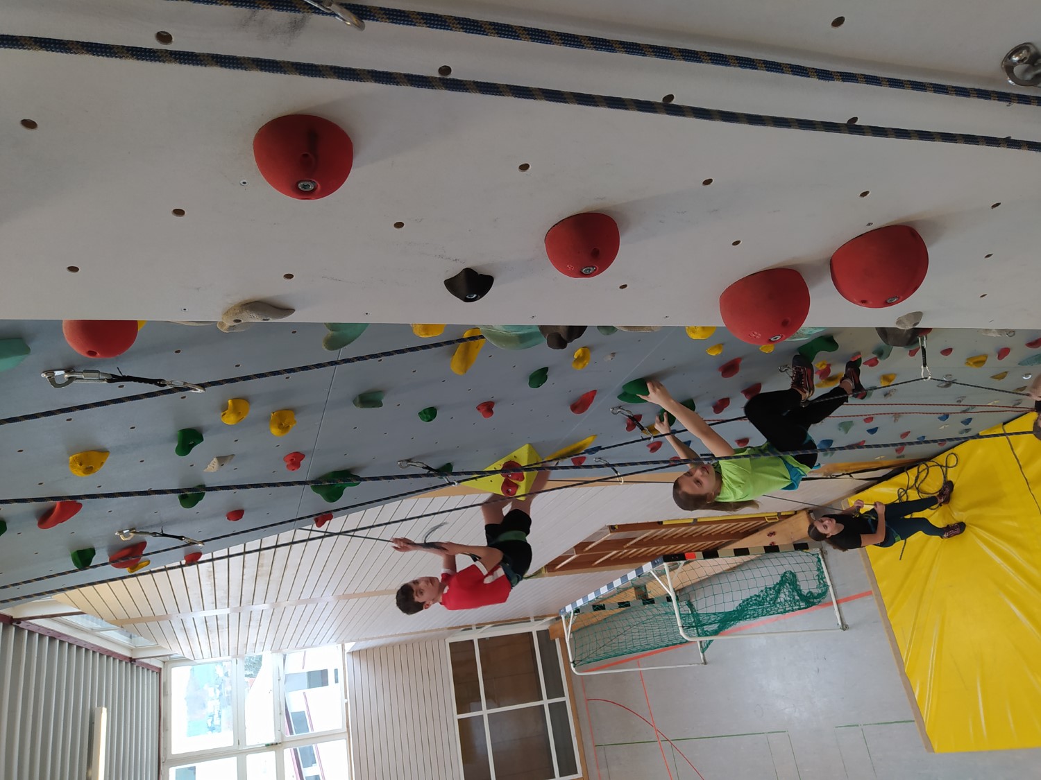 Die Schule besitzt eine ausreichende Anzahl an Klettergurten, Karabinern, Sicherungsgeräten und Seilen. Darüber hinaus bekommen die Kinder bei Bedarf Kletterschuhe von der Schule gestellt.