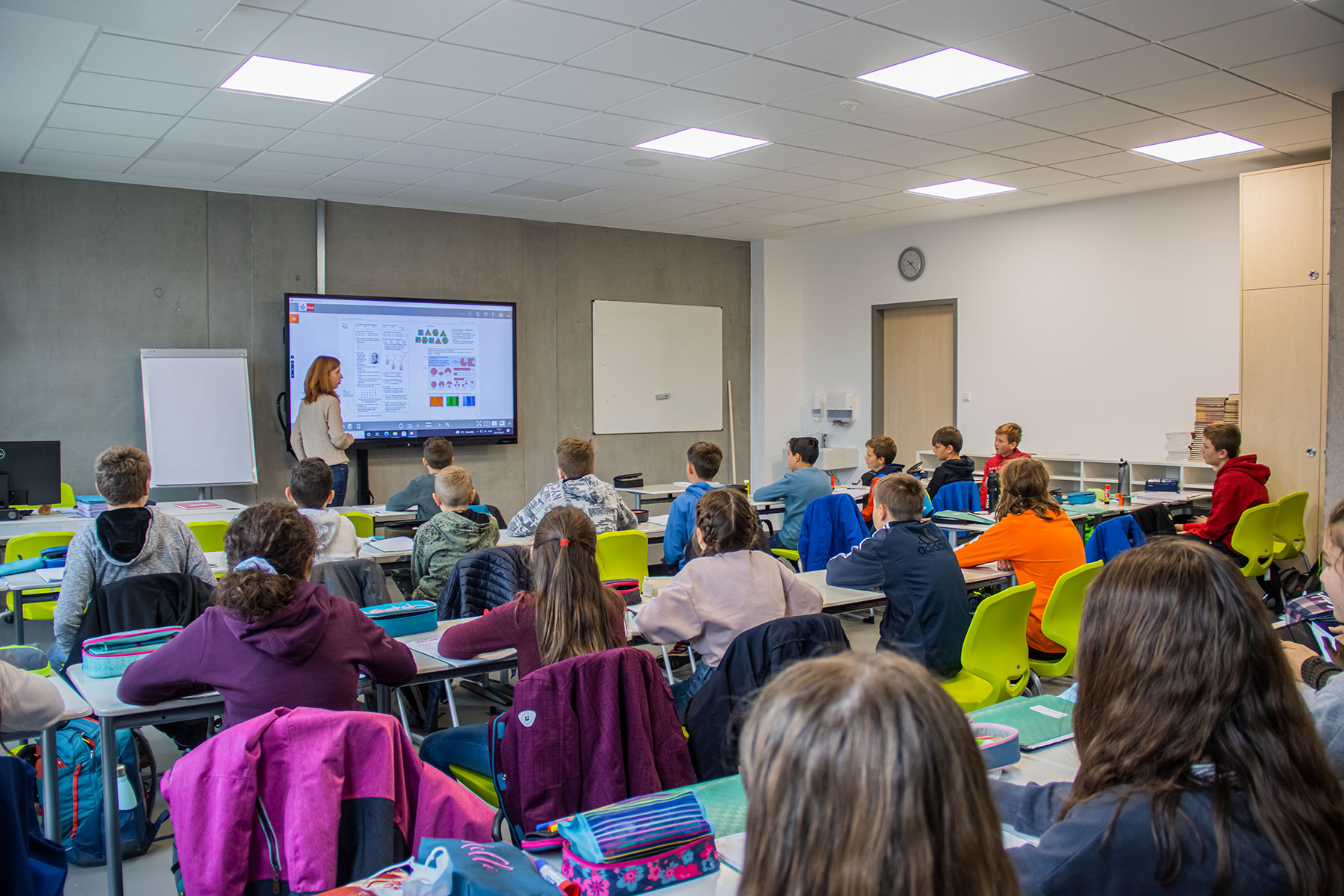 Alle Klassenzimmer der Realschule Oberkirch sind mit Videoprojektoren oder 86-Zoll Prowise Touchscreen Bildschirmen, Smartboards, Stand-PCs und Apple TV ausgestattet.
