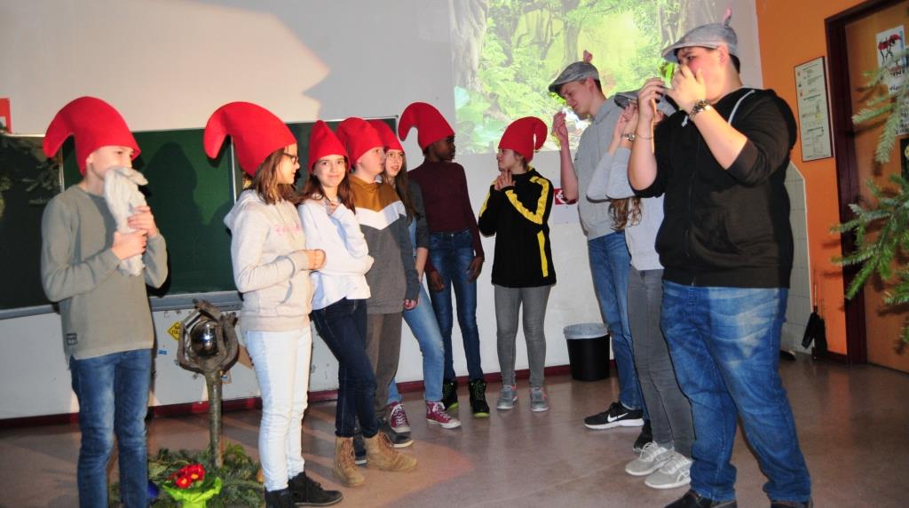 Unter dem Motto „Mach mit“ ließen sich Lehrkräfte mit Schülern für jedes Fach Kreatives einfallen: Die Deutsch-Fachschaft bot „Märchen-haftes“, die Junge Bühne zeigte klasse Impro-Theater, dazu eine Szene aus dem Sommerstück „Rabatz im Zauberwald“, bei der sich die Schauspieler schon sehr gut aufgestellt zeigten.