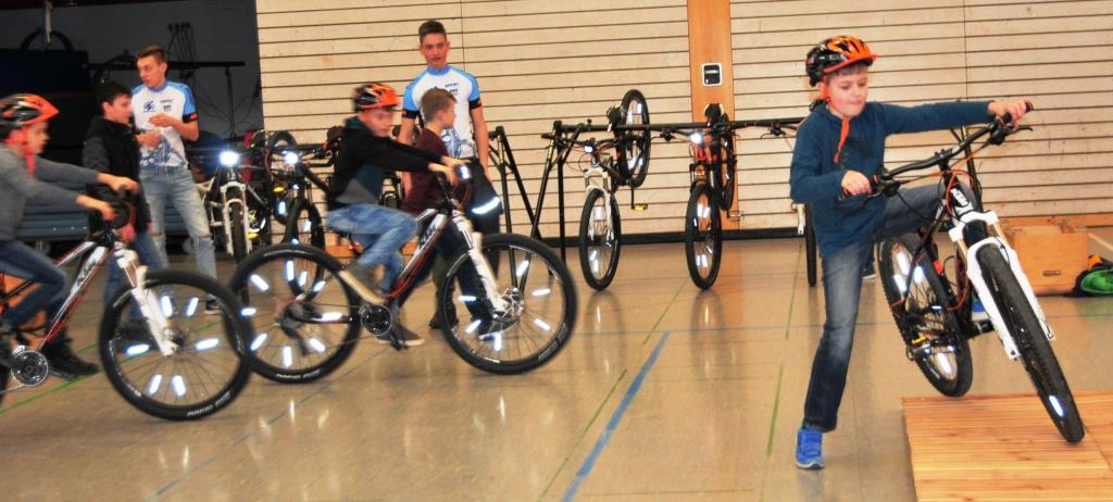 Beim Fahrradparcours der Sport-Fachschaft wurde Körperbeherrschung auf zwei Rädern gezeigt.