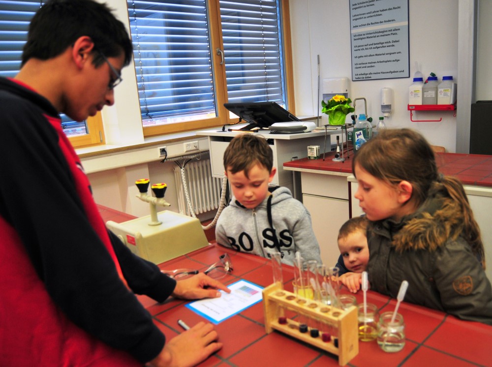 Mathematisches Knobeln war angesagt, englische Schülerarbeiten wurden vorgestellt, französische Mini-Raps geboten. Besonders gut frequentiert waren vor allem der Fachbereiche Physik, Chemie und Biologie, in denen es zischte, krachte, untersucht wurde, und in den Werkräumen, wo Schülerarbeiten ausgestellt, computergesteuert Werkstücke hergestellt und die Augen der Väter größer wurden.