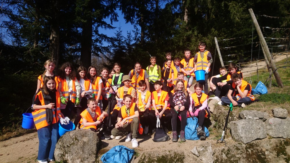 Bei strahlendem Sonnenschein startete die Klasse 7c am Dienstag, den 22.03.22 nachmittags ihre Mitmachaktion bei der Kreisputzete. Sämtlicher Müll wurde dabei auf der Wegstrecke übers Paradies hoch zur Schauenburg eingesammelt. Ausgerüstet mit Warnwesten, Arbeitshandschuhen, Greifzangen und Müllsäcken kamen man bereits beim steilen Aufstieg zur Burg ins Schwitzen. Die Säcke füllten sich dabei mit allerlei Unrat vom Wegesrand und im Wald. Eifrig durchkämmten die Schüler in Gruppen auf der Suche nach Müll auch dorniges Gestrüpp auf dem Burggelände, bevor noch Zeit für gemeinsames Spielen auf der Burg war. Begleitet wurde die Klasse von ihrer Klassenlehrerin Frau Betgen, ihrem Sportlehrer Herr Huber, der Praktikantin Frau Vogt und den beiden Elternvertreterinnen Frau Bieser und Frau Sauer, welche abschließend als Belohnung für alle noch ein erfrischendes Eis organisierten.