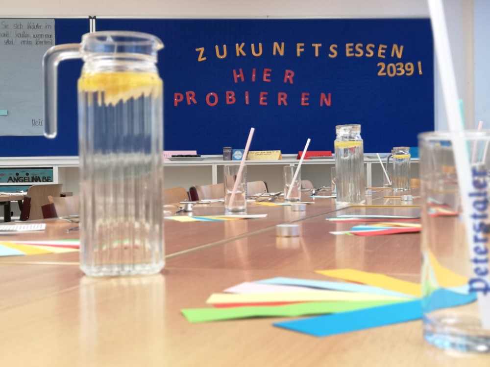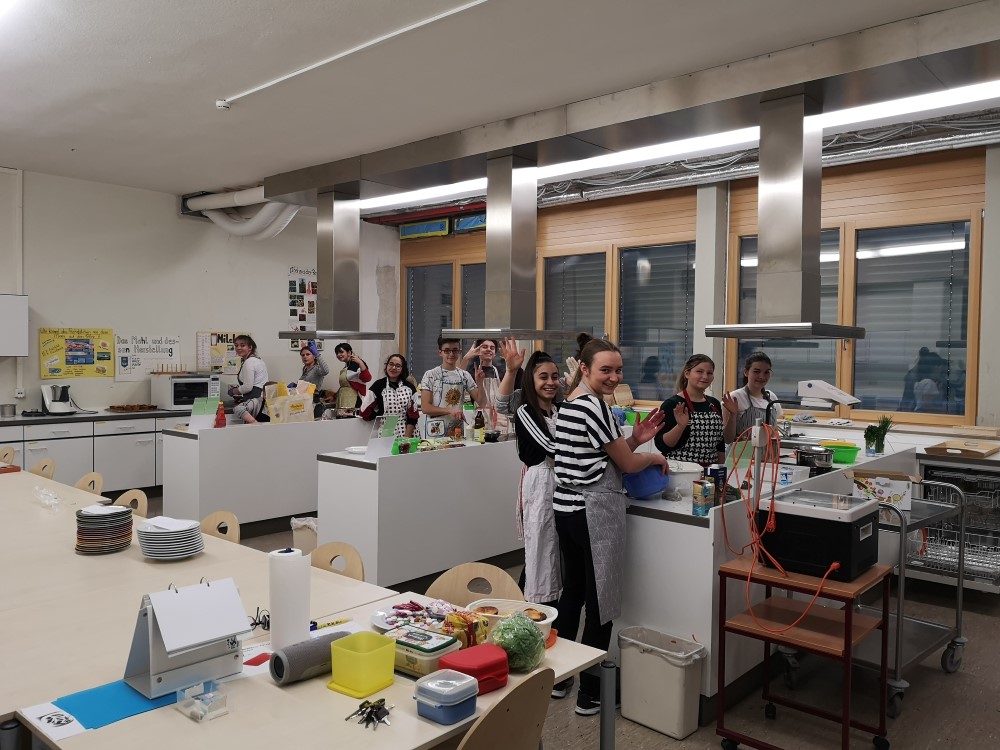 Highlight des Schülerwettbewerbs war das Projektwochenende, bei dem die Schülerinnen und Schüler ihre Eltern, Bekannten und Verwandten mit zukunftsfähigem Essen bekocht haben. Auf der Speisekarte standen unter anderem Algensmoothies, fleischlose Jackfruit-Burger, krummes Gemüse und Insekten-Mousse au chocolat. Von der Planung über den Einkauf, das Kochen, die Begrüßung, bis hin zum Servieren und Aufräumen hatten die Schülerinnen und Schüler jeden Schritt selbst in der Hand.