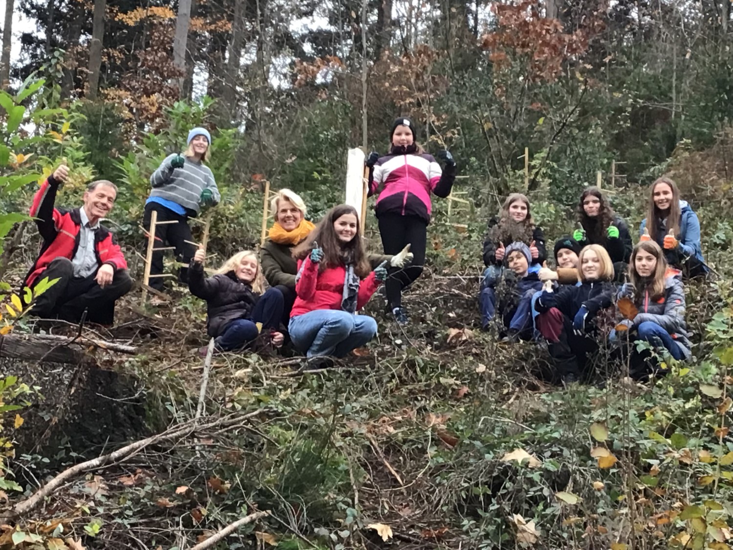 Ein großer Wunsch der Schülerinnen und Schüler der Umwelt-AG war es, selbst im Wald Bäume zu pflanzen. In der letzten Novemberwoche schritten die UmweltschützerInnen zur Tat und so wurde unter Anleitung von Revierförster Michael Sauter und den Lehrerinnen Simone Kraus und Maria Guerra ein Waldstück, in welchem viele Bäume abgestorben waren, neu bepflanzt.