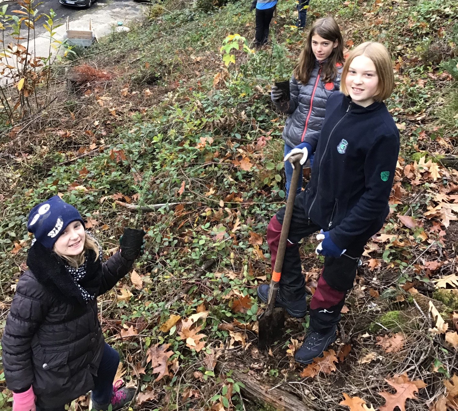 Ein großer Wunsch der Schülerinnen und Schüler der Umwelt-AG war es, selbst im Wald Bäume zu pflanzen. In der letzten Novemberwoche schritten die UmweltschützerInnen zur Tat und so wurde unter Anleitung von Revierförster Michael Sauter und den Lehrerinnen Simone Kraus und Maria Guerra ein Waldstück, in welchem viele Bäume abgestorben waren, neu bepflanzt.