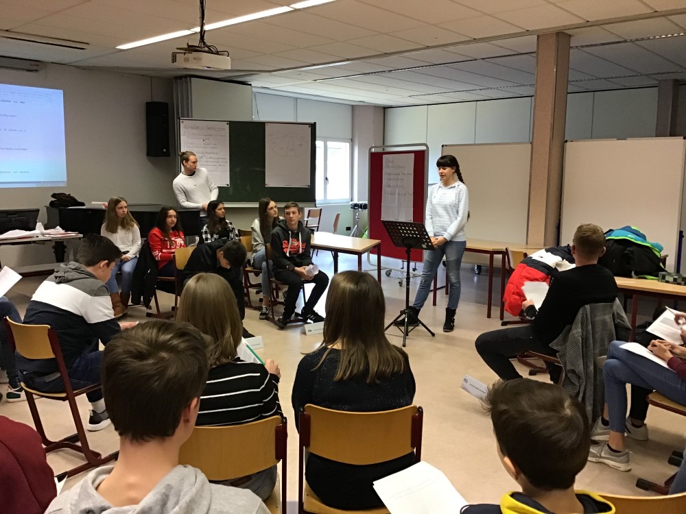 Am vergangenen Montag warteten die Schülerinnen und Schüler der Klasse 9A gespannt auf den Aktionstag „Bundestag macht Schule“. Eingeladen waren Frau Melissa Bernhardt und Herr David Bald von der Landeszentrale für politische Bildung Freiburg, die der Klasse anschaulich und handlungsorientiert die Arbeit des deutschen Bundestags näher brachten.