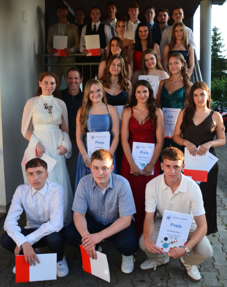 Bei der Abschlussfeier der Realschule am Freitagabend in der voll besetzten Erwin-Braun-Halle konnte Rektor Werner Franz mit seinem Kollegium den diesjährigen Jahrgang verabschieden. 131 Zehntklässler haben erfolgreich ihre mittlere Reife abgelegt, 8 weitere Schüler den Hauptschulabschluss erreicht. Mit einer beeindruckenden Zahl von 40 Preisen und 25 Loben erreichten die Absolventen ein Rekord-Ergebnis.