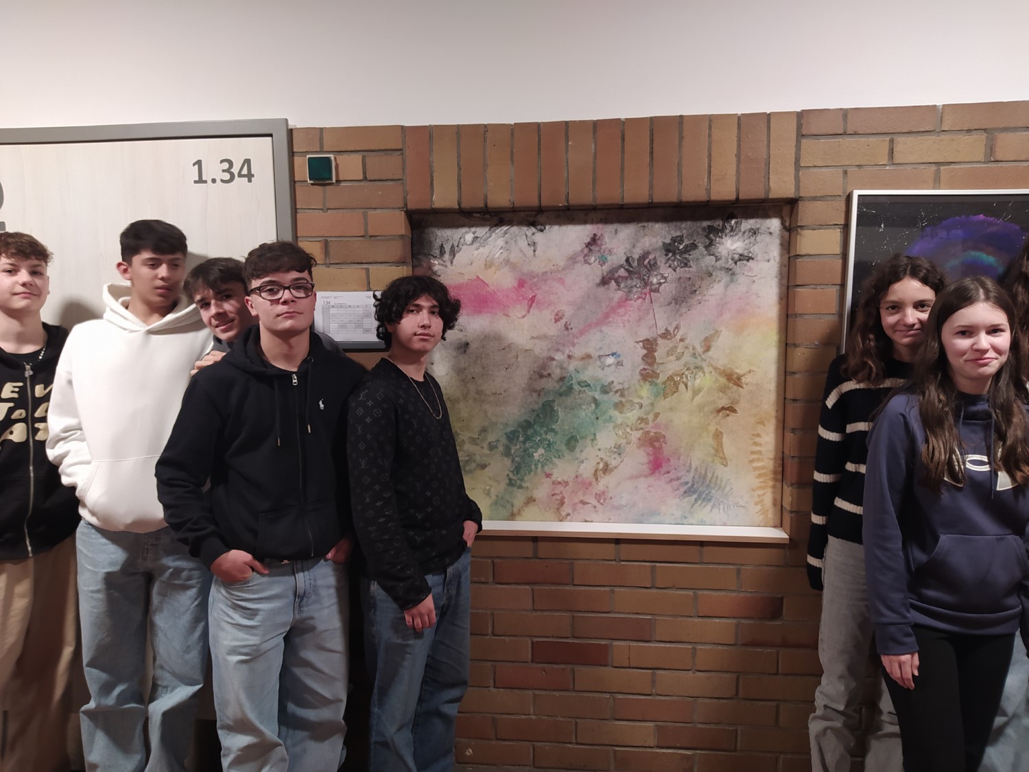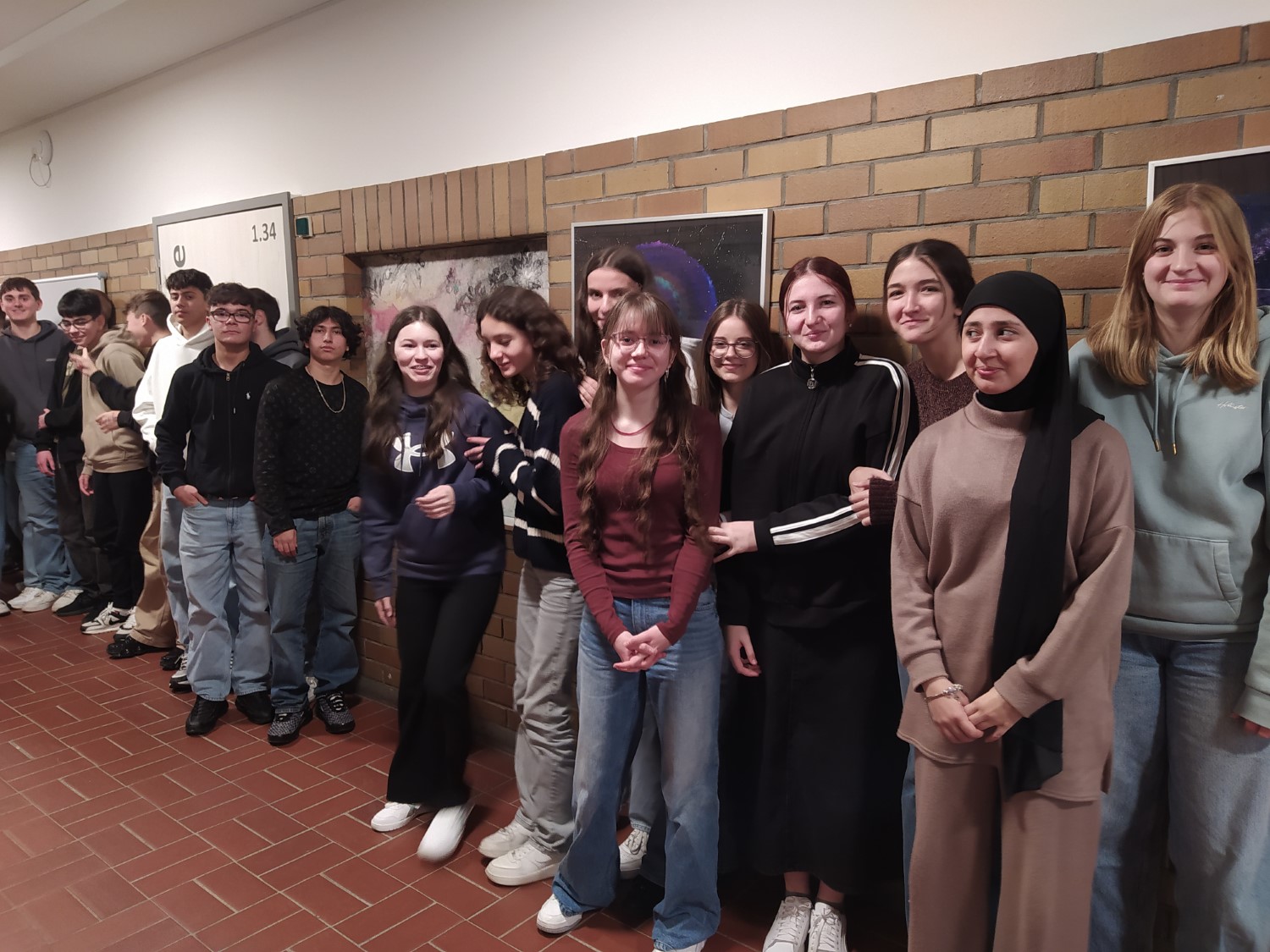 Die Klasse 9c nach dem Anbringen ihres Werks neben dem Biologiesaal.