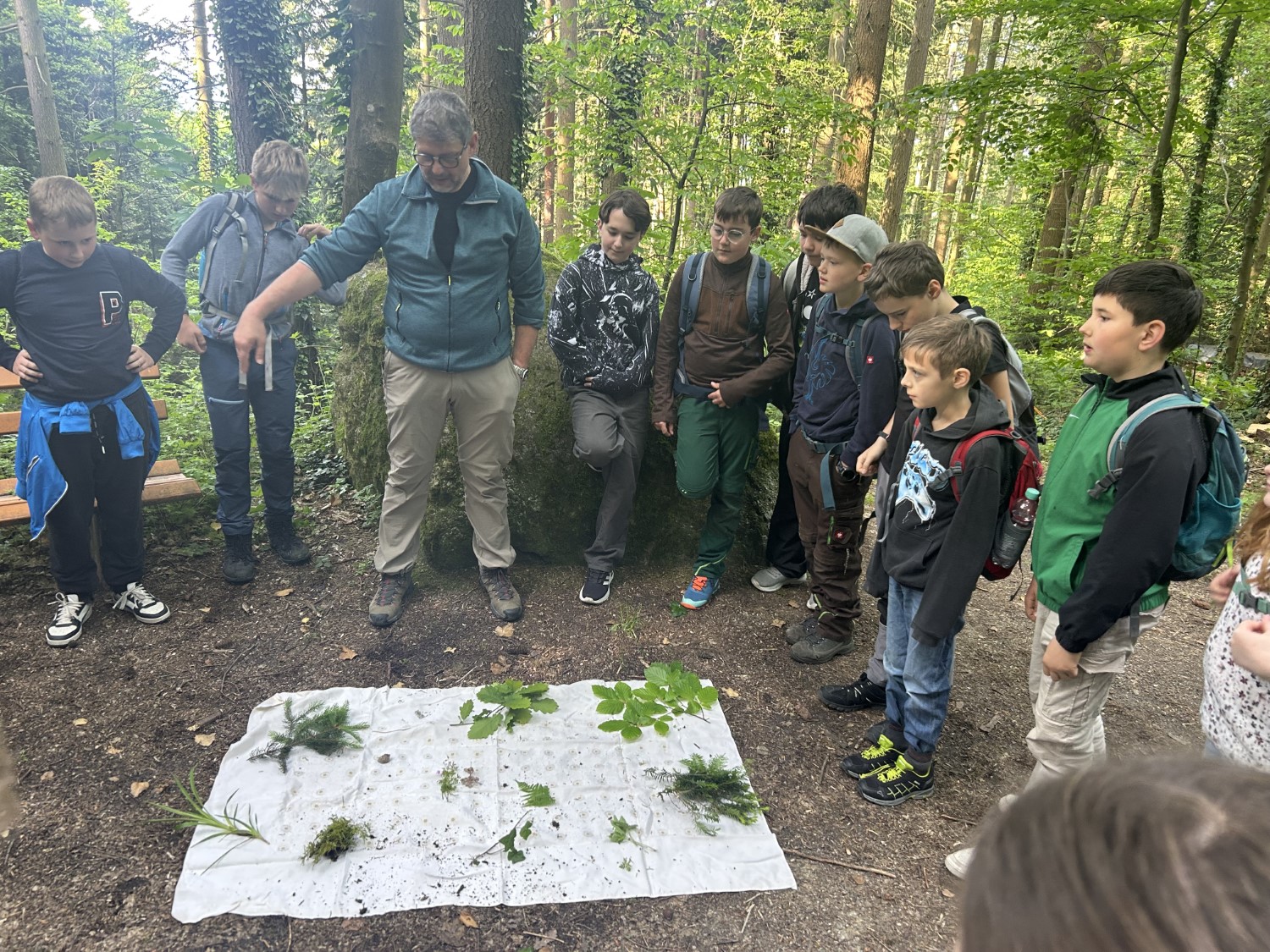 Zu Beginn sammelten die Schülerinnen und Schüler verschiedene Pflanzen, die anschließend gemeinsam bestimmt wurden. Dabei lernten sie nicht nur viel über die heimische Flora, sondern schärften auch ihre Aufmerksamkeit für Details. Ein besonderes Highlight waren die vertrauensbildenden Spiele mit verbundenen Augen, bei denen die Kinder den Wald auf ganz neue Weise, mit allen Sinnen, erfahren konnten.