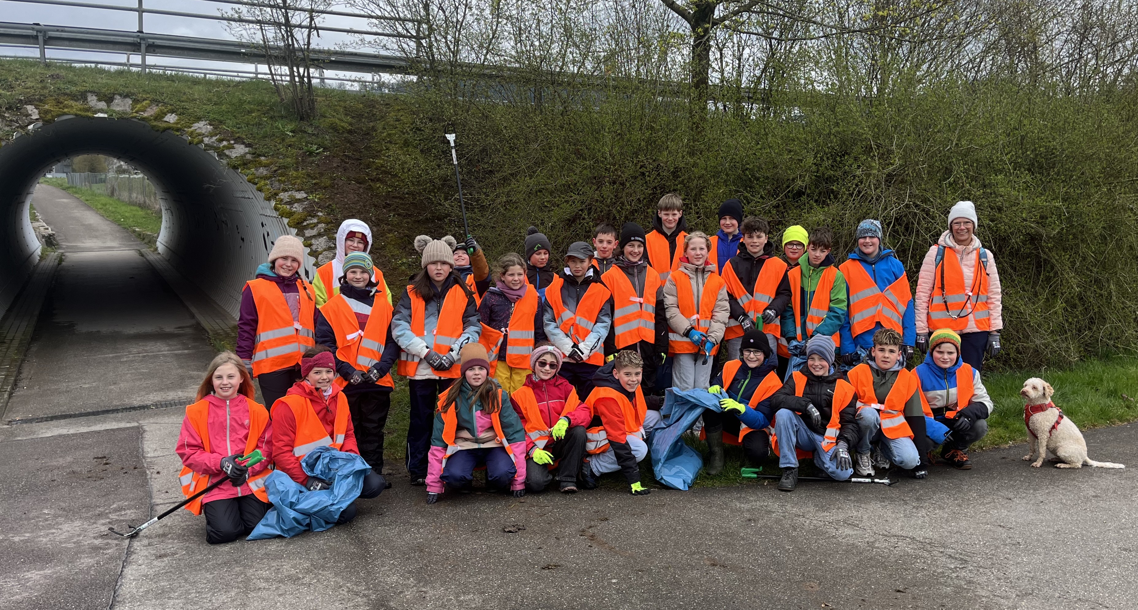 Am Mittwochmorgen und –nachmittag folgten die Klasse 5b und die Umwelt AG und sammelten bei nasskaltem Wetter und Wind eine Vielzahl von Zigarettenkippen und Plastik auf. Einen Tag später war die 5a sehr erfolgreich mit ihrer Putzaktion entlang der Rench, der sehr schlechten Wetterprognose trotzend. Nur ein kurzer Graupel-Schauer am Ende der Aktion sorgte dafür, dass die Kinder zurück in der Schule in ihre Ersatzklamotten schlüpften, um den gelungenen Vormittag trocken mit einem Spiel abschließen zu können. Auch die Klasse 6c und die Klasse 7b waren unterwegs, um fleißig Müll zu sammeln.