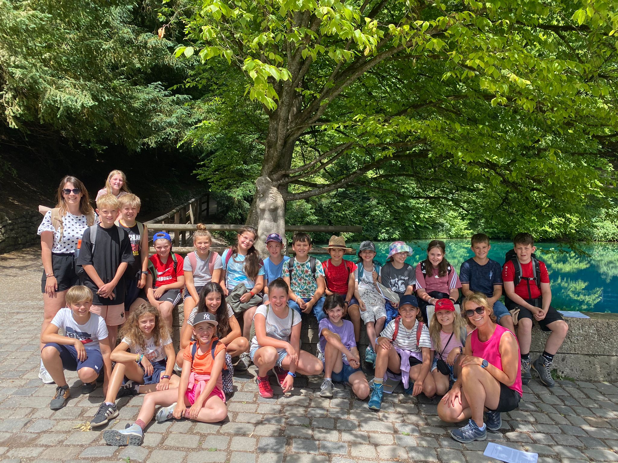 Der zweite Tag war erfüllt mit einem Besuch und einer Führung durch das urzeitliche Museum in Blaubeuern. In einem anschließenden Workshop durften die Kinder einen Lederbeutel mit Faustkeilen und Lederstücken herstellen. Nach einem kurzen Spaziergang durch Blaubeuren konnten die Kinder dann die Faszination des Blautopfs und die Sage der Schönen Lau, vor Ort kennenlernen. Bei einer anschließenden kleinen Wanderung zu den Bad Uracher Wasserfällen, konnten die Kinder staunend die Karsterscheinungen der Schwäbischen Alb betrachten.