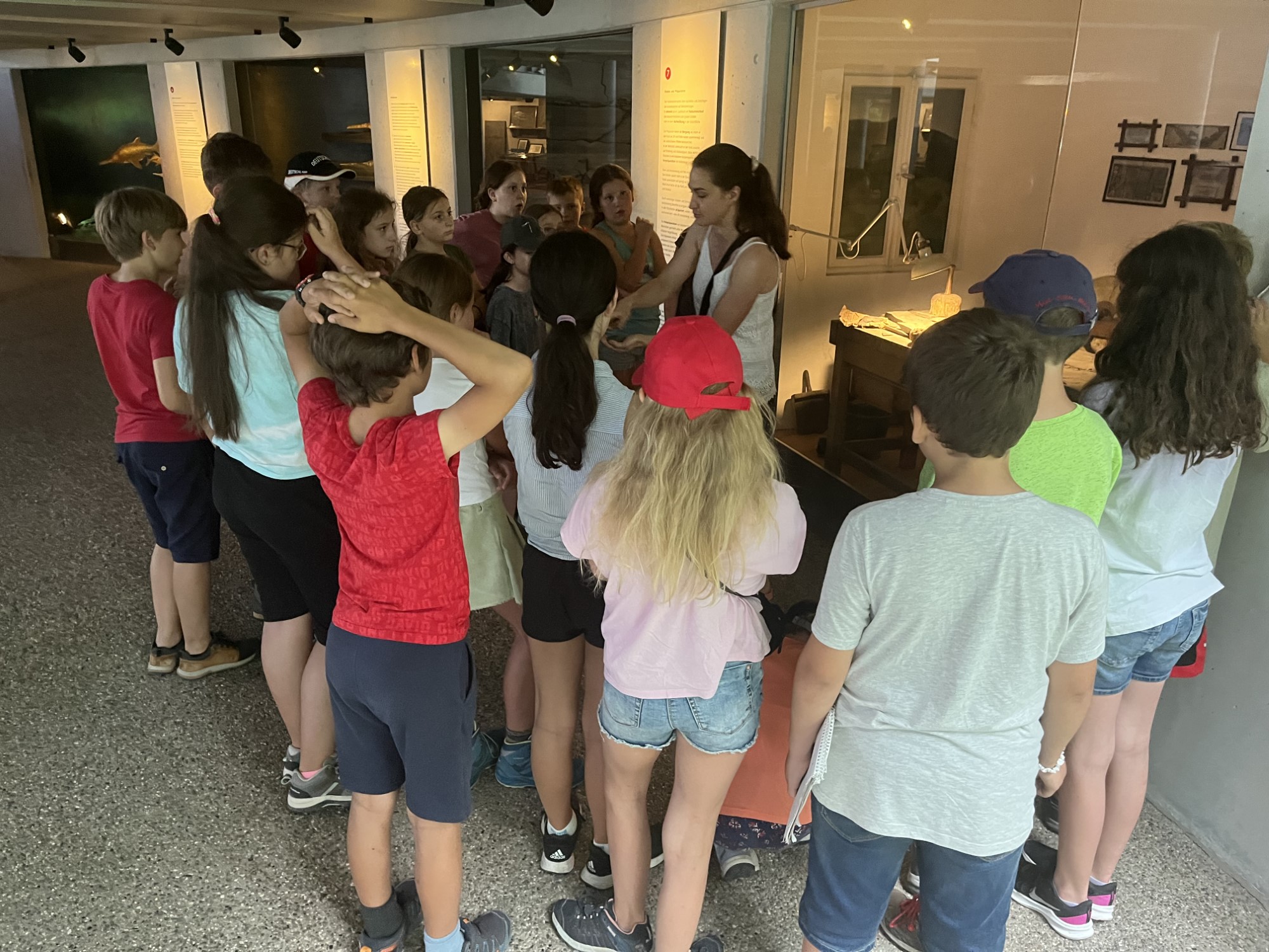 Der zweite Tag war erfüllt mit einem Besuch und einer Führung durch das urzeitliche Museum in Blaubeuern. In einem anschließenden Workshop durften die Kinder einen Lederbeutel mit Faustkeilen und Lederstücken herstellen. Nach einem kurzen Spaziergang durch Blaubeuren konnten die Kinder dann die Faszination des Blautopfs und die Sage der Schönen Lau, vor Ort kennenlernen. Bei einer anschließenden kleinen Wanderung zu den Bad Uracher Wasserfällen, konnten die Kinder staunend die Karsterscheinungen der Schwäbischen Alb betrachten.