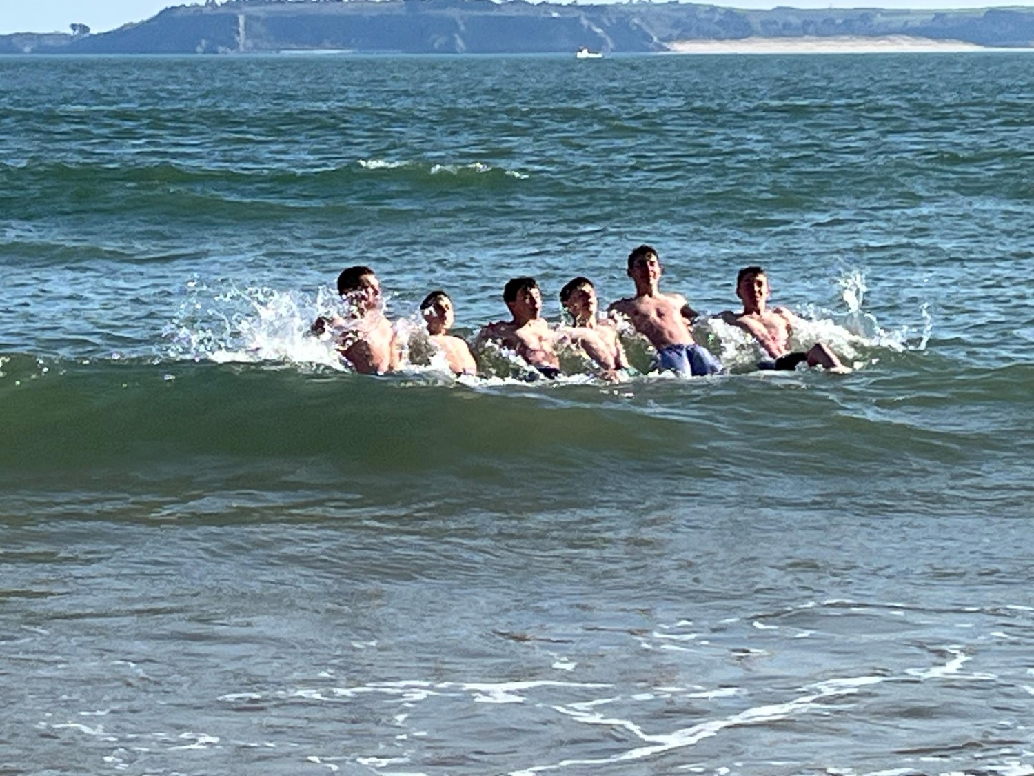 Als nächstes ging es nach Tenby einem berühmten Badeort in Pembrokeshire. Ein paar mutige SchülerInnen, sowie Herr Kowalsky, wagten ein Springen in die eiskalten Fluten des Atlantiks. Gemeinsam verbrachten wir noch einige Zeit am beeindruckenden Strand mit Blick auf das azurblaue Meer.