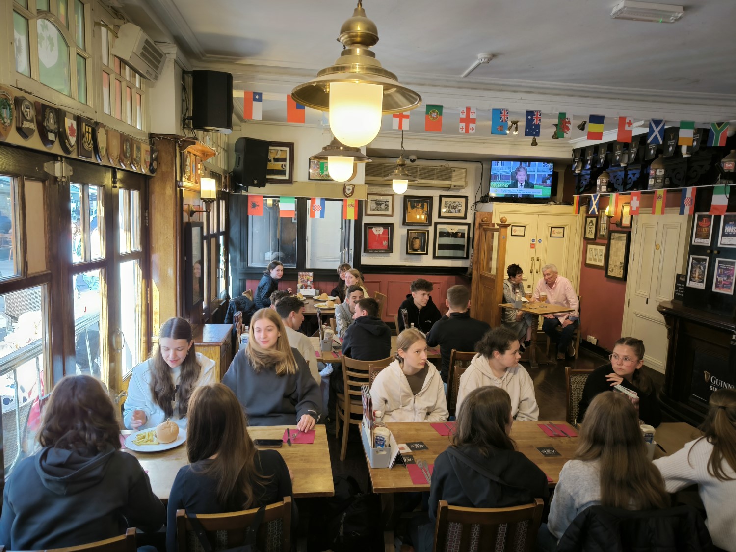 Am Mittwoch fuhren wir mit dem Bus nach Cardiff, der Hauptstadt von Wales. Dort angekommen besuchten wir zuerst St Fagons, ein Freilichtmuseum ähnlich dem der Vogtsbauernhöfe in Gutach. Dort gab es viel zu entdecken. Angefangen haben wir die Tour im St Fagans Castle, die dann weiter ging in eine Besichtigung einer historischen Weberei und einer Reihenhaussiedlung, die die unterschiedlichen Lebensweisen der Menschen innerhalb eines Jahrhunderts darstellten. Gegen Mittag fuhren wir dann weiter in die Innenstadt Cardiffs, in der wir erst einmal mehrere Stunden Freizeit hatten. Abends gingen wir gemeinsam in ein typisches Pub und haben leckere Burger gegessen. Während wir uns in der Stadt aufhielten, war gleichzeitig ein riesiges Sportevent zwischen den Universitäten Cardiffs und Swansea und die Straßen waren überfüllt mit Fans in lustiger Feierlaune.