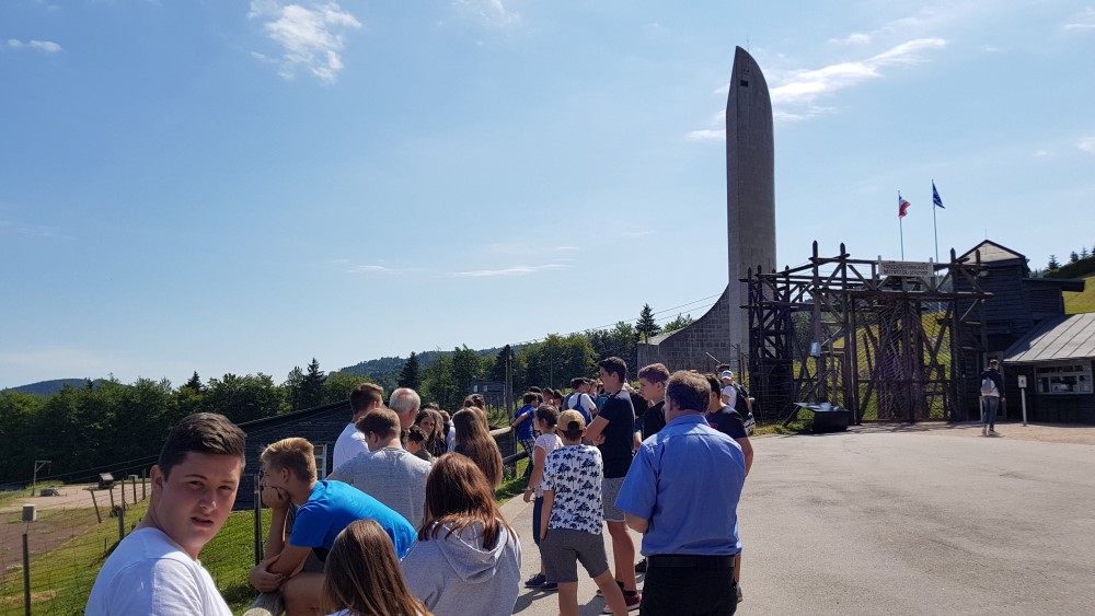 Im Rahmen einer Studienfahrt in der dritten Projektwoche besuchten die vier neunten Klassen in Begleitung ihrer Klassen- bzw. Geschichtslehrer die Gedenkstätte auf dem Gelände des ehemaligen Konzentrationslagers in den Hochvogesen.