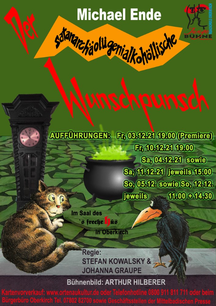Die Junge Bühne spricht in ihrer Weihnachtsinszenierung ein aktuelles Thema an - und das auf witzige Weise mit vorzüglichen und erfahrenen Schauspielern. Mit fantastischen Einfällen erzählt Michael Ende die Geschichte eines schaurig-vergnüglichen Wettlaufs gegen die Zeit, die heute ein Klassiker und fast aktueller ist als im Jahr seiner Entstehung. Durch die vielen augenzwinkernden Anspielungen ist das Stück auch für Erwachsene, für Kinder ab 6 Jahren und Jugendliche ein Vergnügen. Regie führen Stefan Kowalsky und Johanna Graupe, Arthur Hilberer ist für die Bühnengestaltung, Frauke Baldus-Fleck und Lisa Lietz sind für die Kostüme verantwortlich.