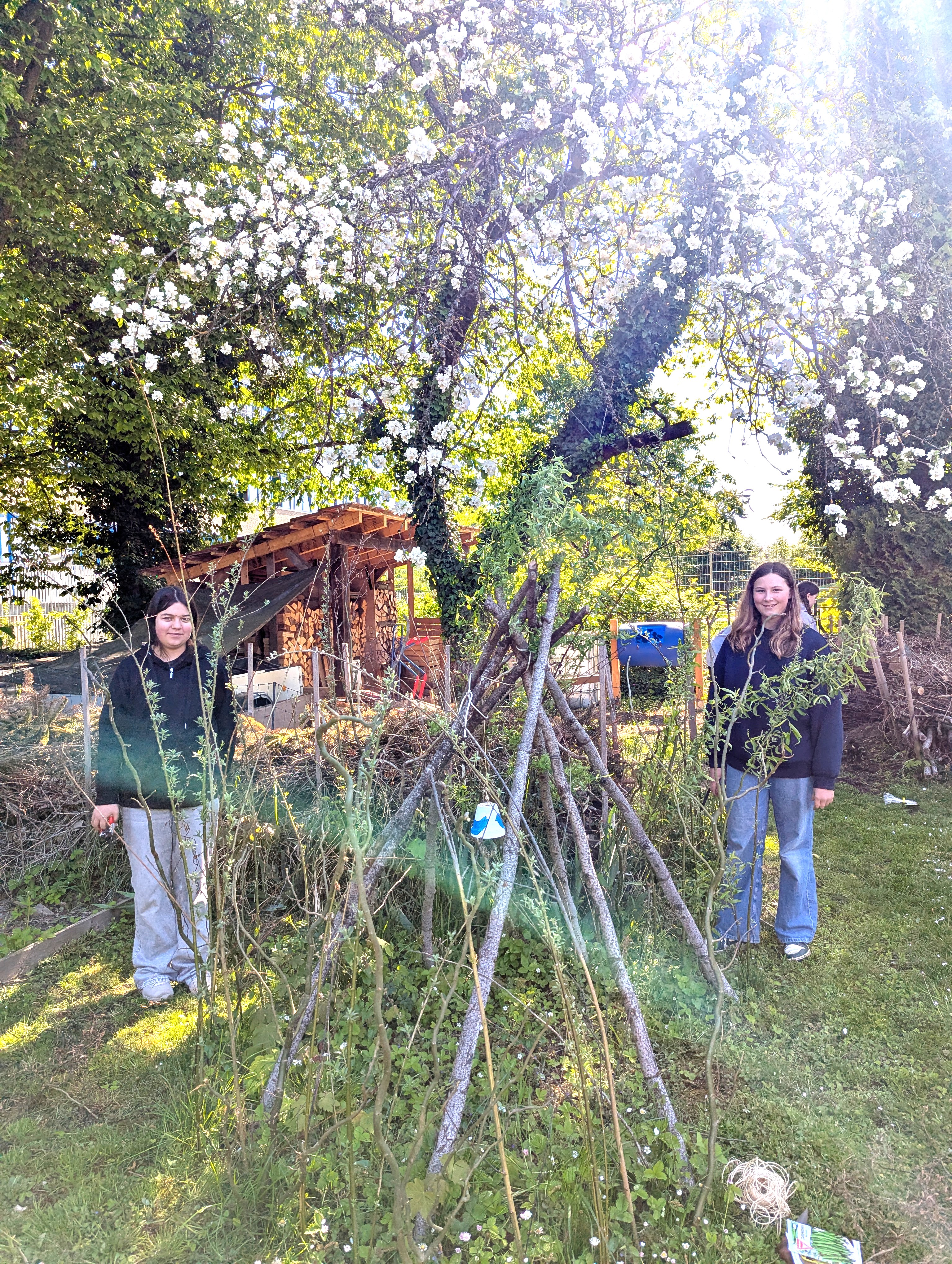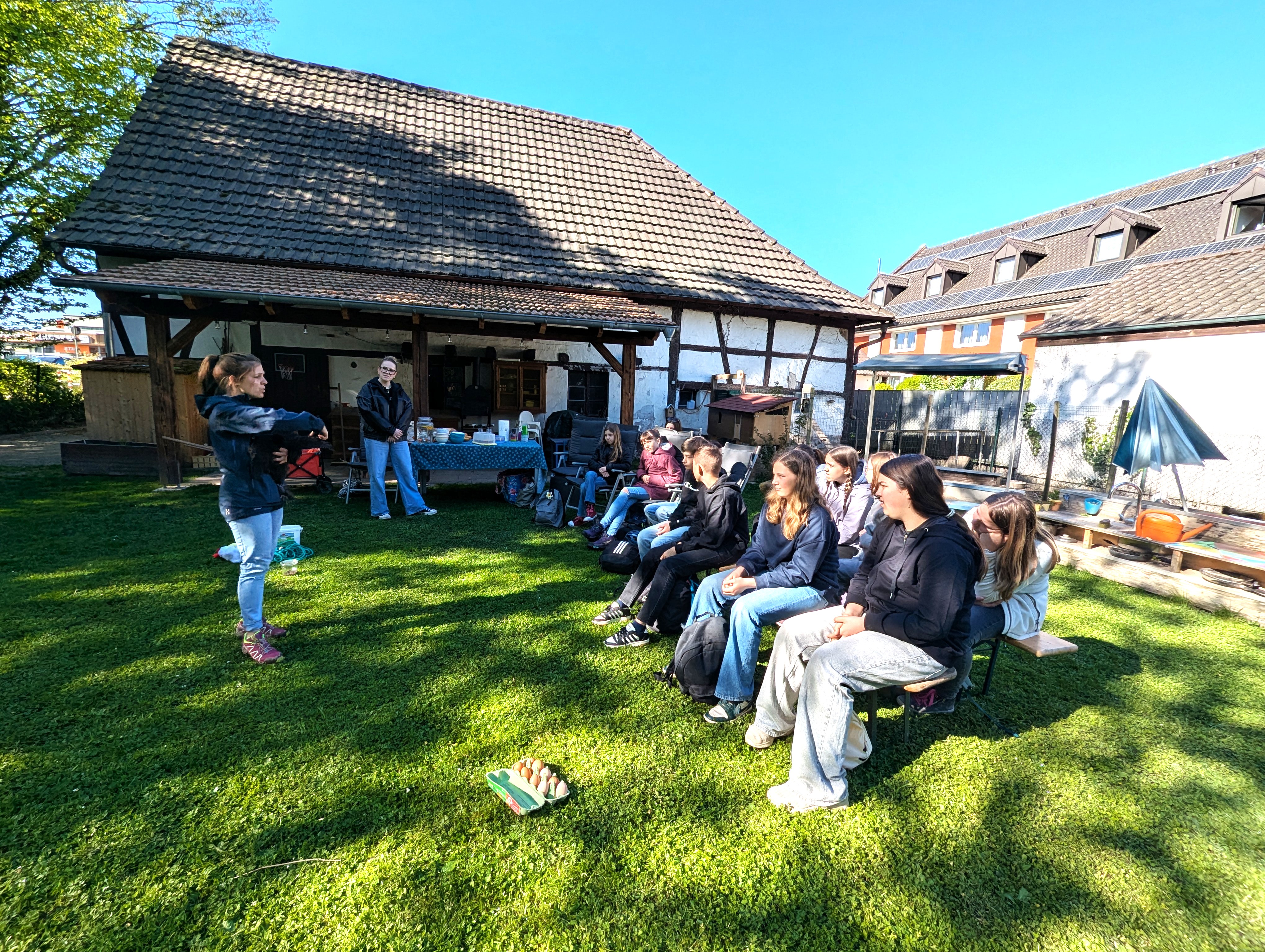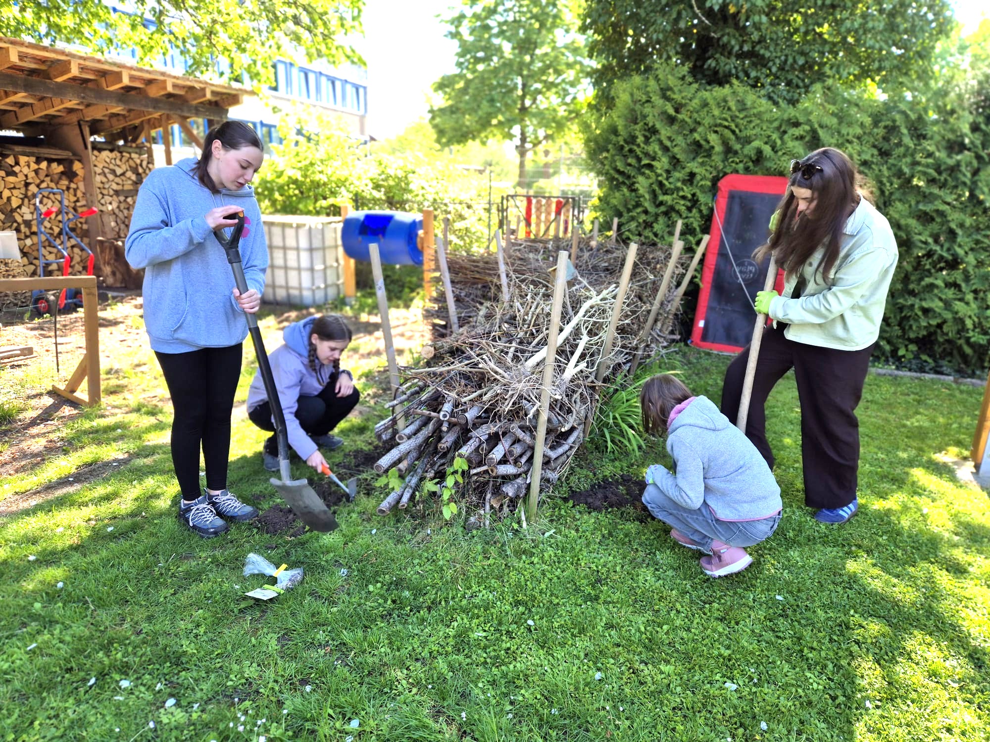 Im naturnahen Garten ging es dann richtig los: Beete bepflanzen, Samen aussäen, Blumenwiesen anlegen und sogar ein Bohnengerüst bauen – hier war Teamwork gefragt. Ganz nebenbei wurde klar, wie biologischer Anbau funktioniert und wie wichtig natürliche Kreisläufe sind.