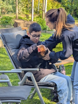 Das Beste: Die Schülerinnen und Schüler konnten die Hühner nicht nur beobachten, sondern auch streicheln und Stall sowie Außengelände selbst erkunden.