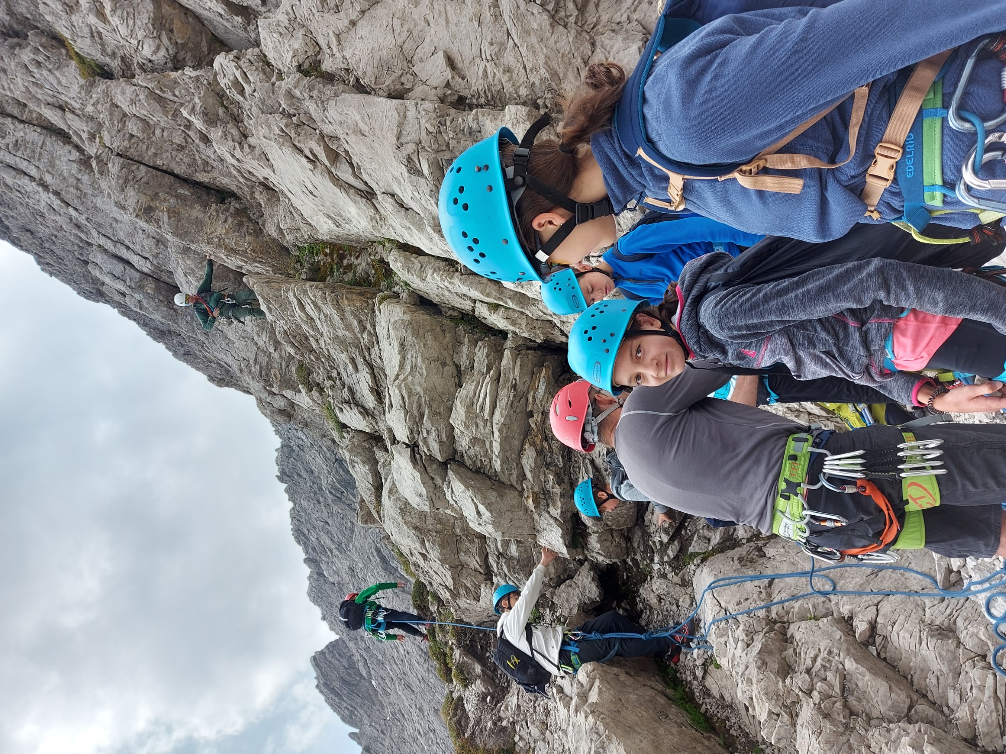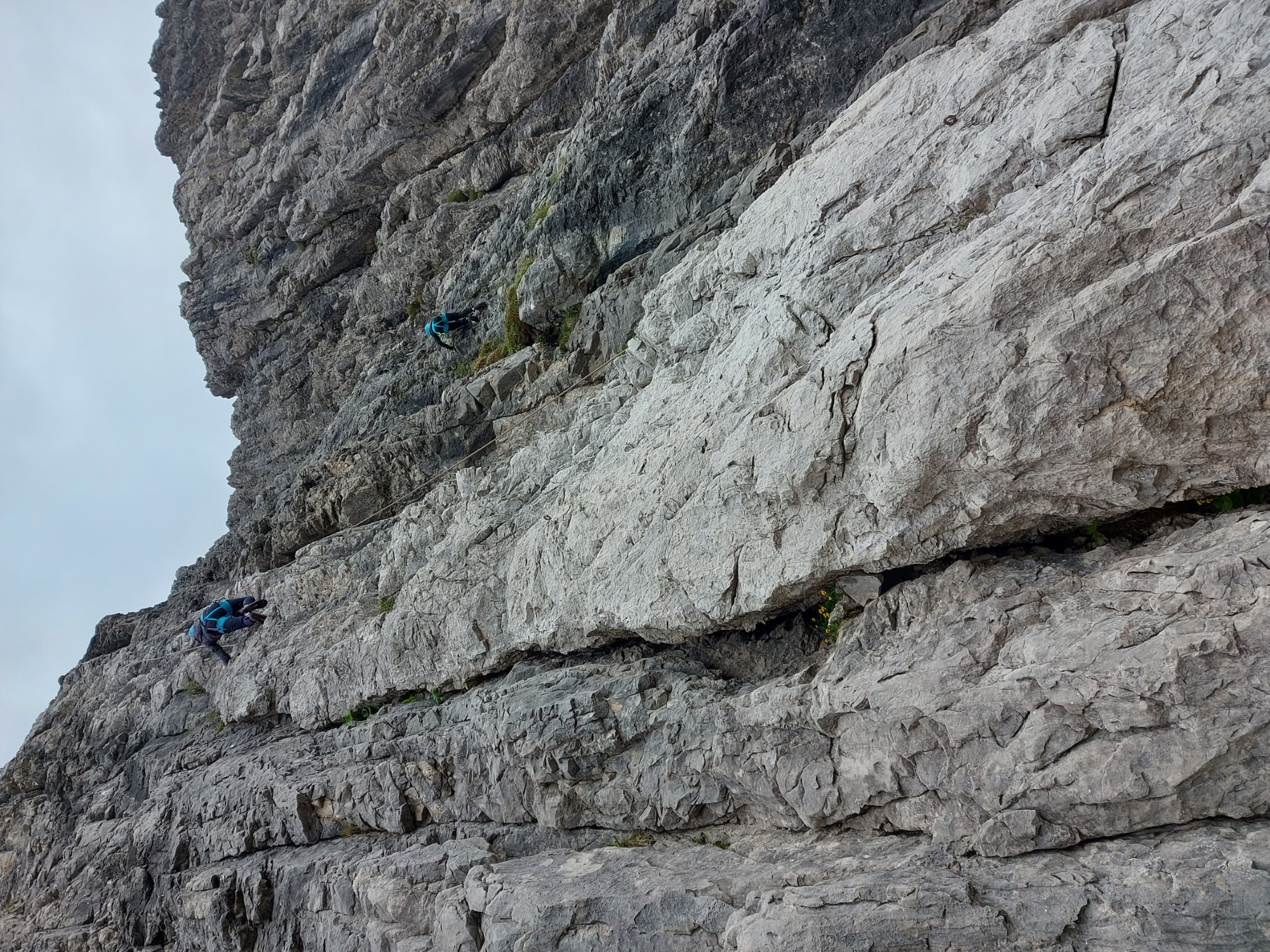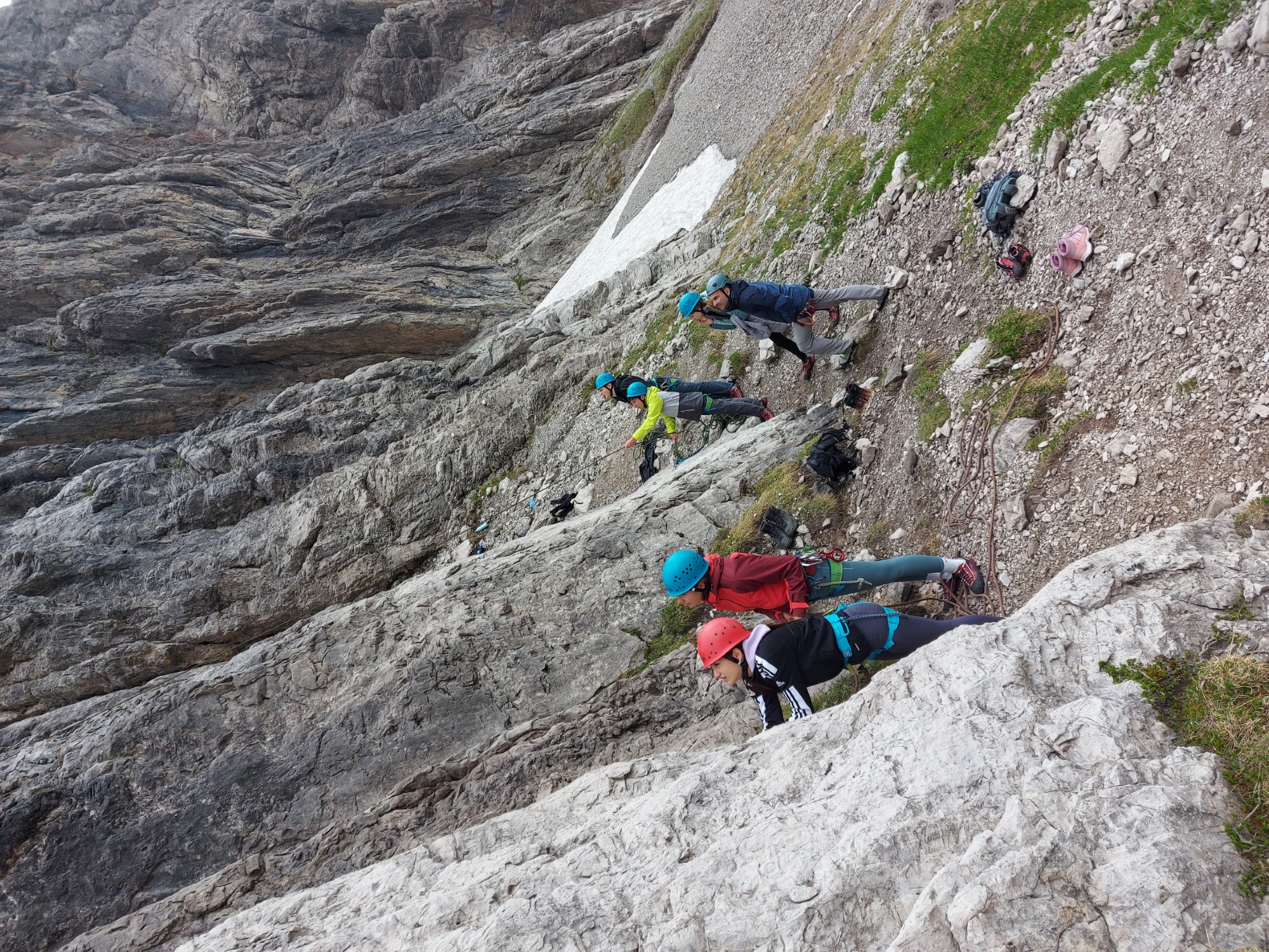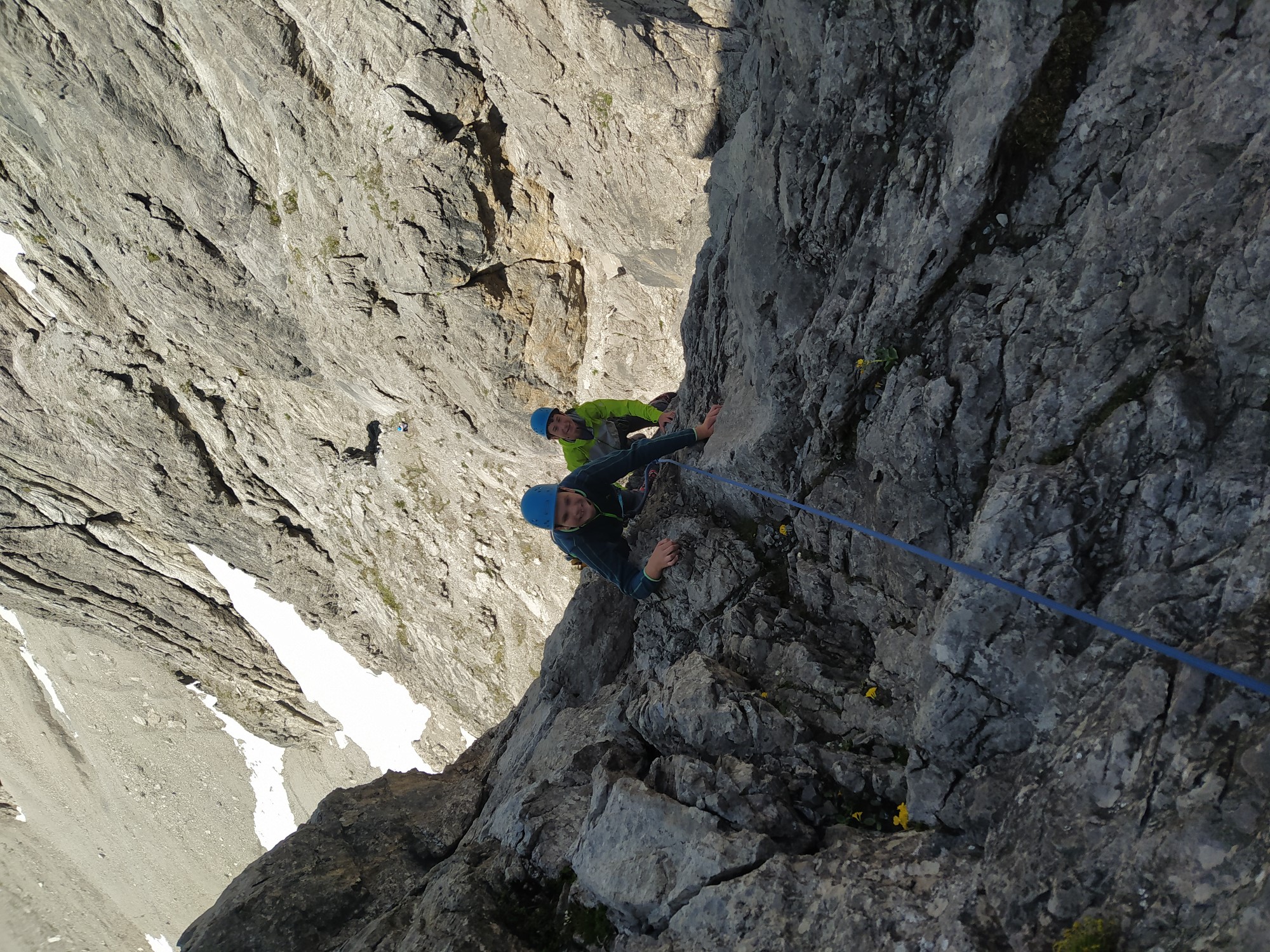 Bei der Kletterroute „Lange Kante“ wurde am Ende nicht abgelassen, sondern alle Kletterer gingen durch eine Scharte einen Klettersteig hinab und anschließend zurück zur Hütte.