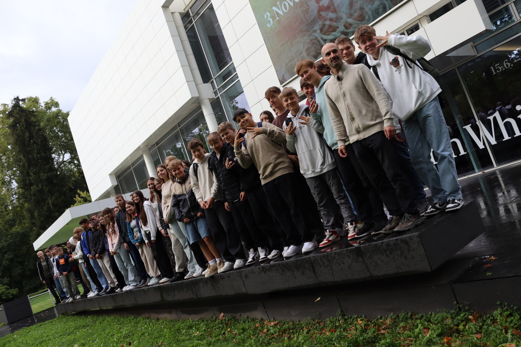 Die Klassen 9c und 9d der RSO vor dem imposanten Gebäude des Burda-Museums