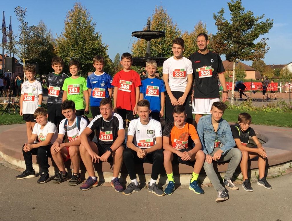 Viele motivierte Schüler von Acherner und Oberkircher Schulen starteten bereits um 10.30 Uhr, um den hügeligen 6-km-Schülerlauf zu bewältigen. Besonders stark vertreten war das Laufteam der Klasse 7b mit sieben Schülern, wobei Harun Kelm (Jahrgang 2007) in hervorragenden 30:47 über die Ziellinie lief.