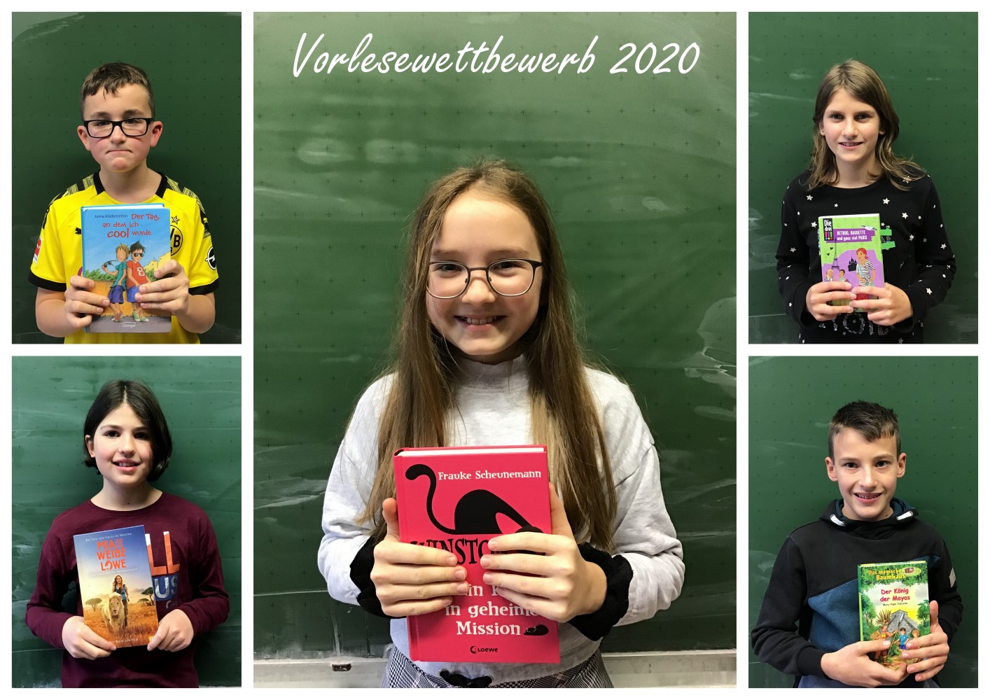 Letztlich konnte sich Jana Huck (6d) mit dem Vortrag aus ihrem Buch „Winston – Ein Kater in geheimer Mission“ knapp gegenüber ihren Mitstreiter/innen Christian Retsch (6a), Philipp Huber (6b), der spontan für die erkrankte Klassensiegerin eingesprungen war, sowie Lara Kiefer (6c) und Anna Hoferer (6e) durchsetzen. Sie darf nun in der nächsten Runde ihr Können in einem Wettbewerb gegen Sechstklässler auf Kreisebene erneut unter Beweis stellen.