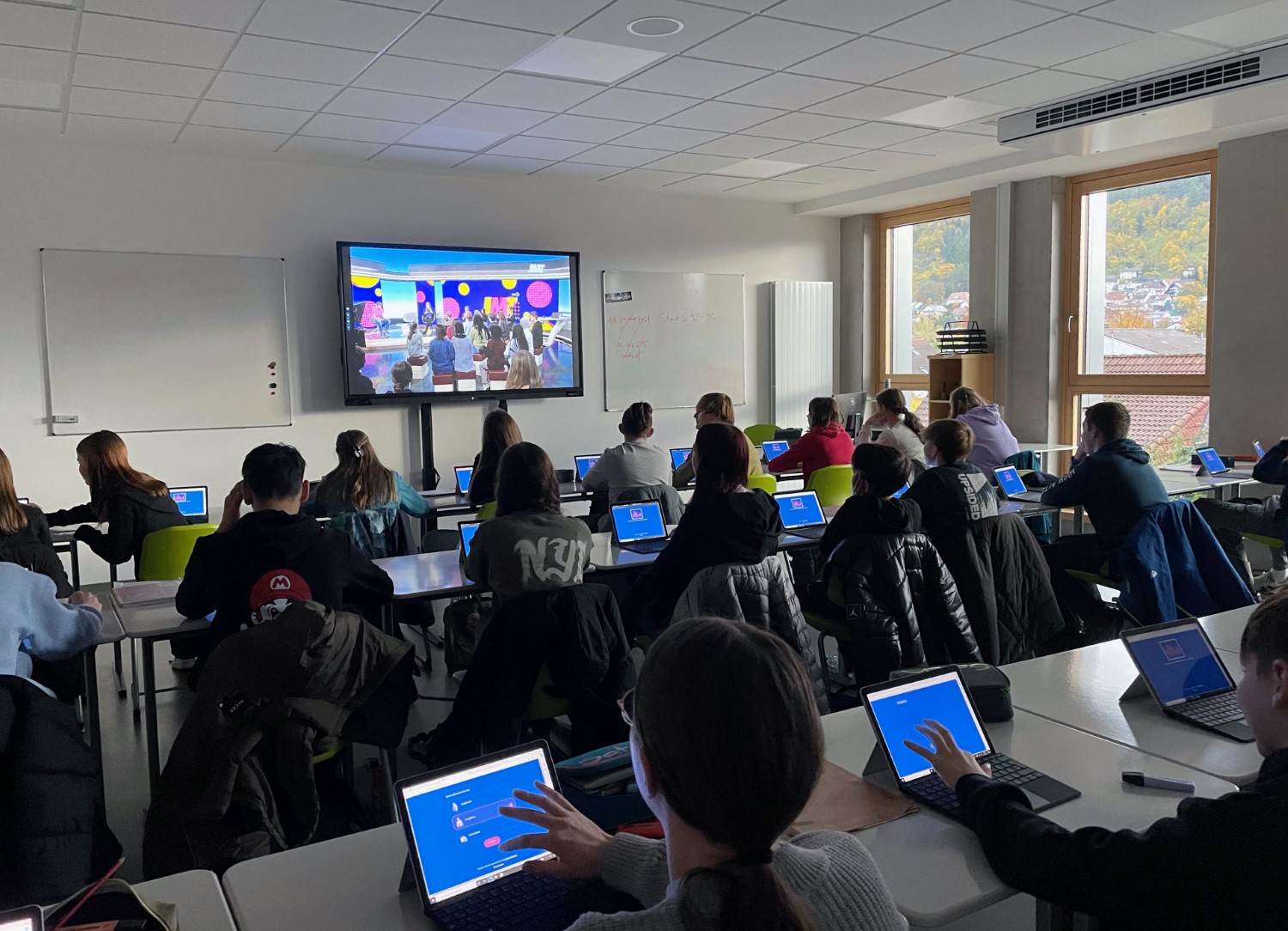Die Klassen 9e und 8a warteten am Mittwochmorgen sehr gespannt auf den Start des Live-Streams des Jugendmedientags zum Thema Künstliche Intelligenz, organisiert von der ARD.