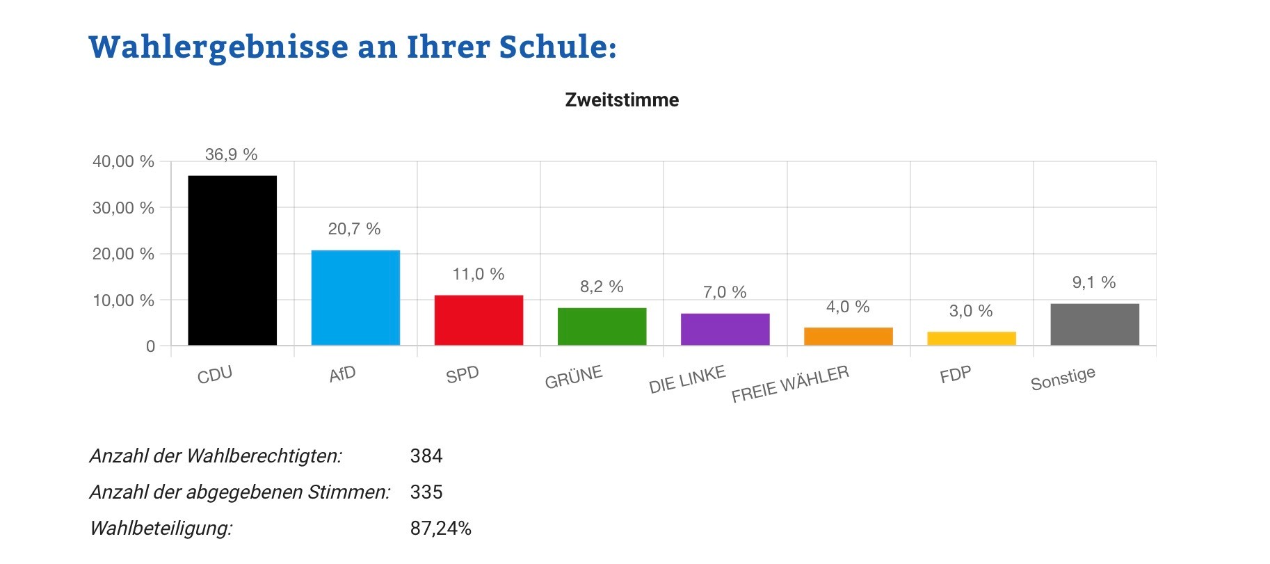 Organisiert wurde die Juniorwahl von Frau Karl und Frau Stehle. Unterstützung erhielten sie von engagierten Wahlhelferinnen und Wahlhelfern aus den Klassen 8c und 8f, die bei der Vorbereitung und Durchführung der Wahl halfen und so einen wichtigen Beitrag zum Gelingen der Aktion leisteten.