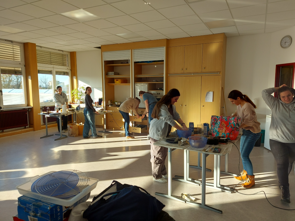 Die Klasse 10a bei Vorbereitungen zu ihrem Kinoabend