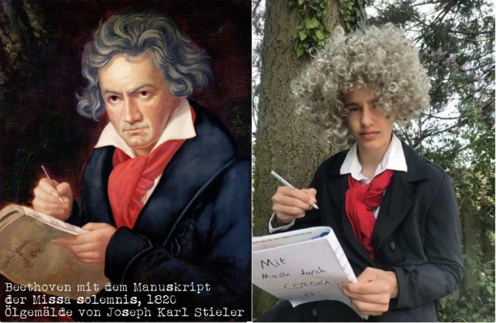 Nina Goldbaum (7c) nutzt Kunstwerke zum verdeutlichen von Corona-Verhaltensregeln