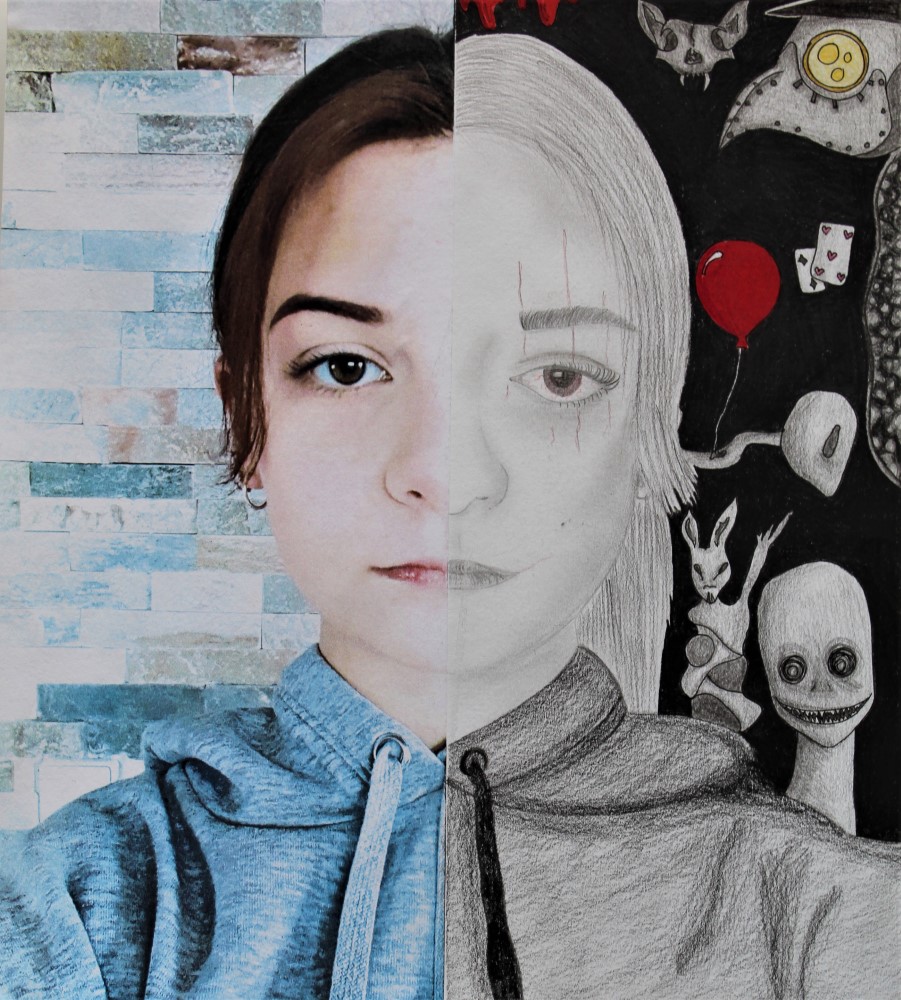 Kunstprojekt der 10ten Klassen im Fernunterricht mit dem Titel "Wer bin ich?"