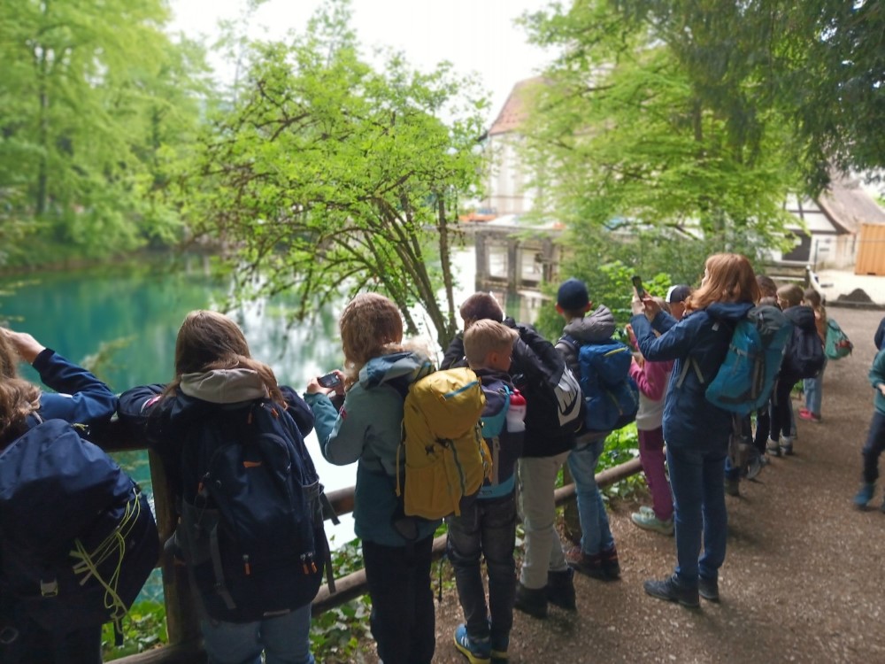 Am zweiten Tag wanderten die Klassen zu den Uracher Wasserfällen. Dort machten alle eine Vesperpause und fuhren nach Beendigung der Wanderung nach Blaubeuren, um den Blautopf zu sehen und das Urgeschichtliche Museum zu besichtigen.