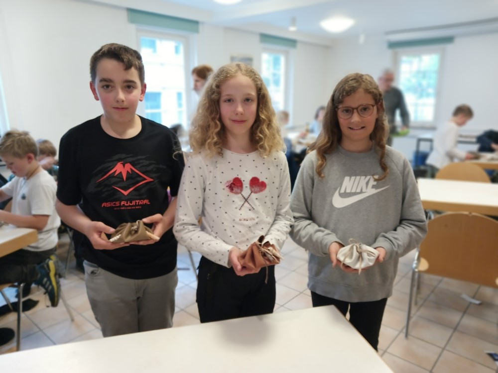 Außerdem besuchten die Klassen dort einen Workshop und stellten in diesem einen steinzeitlichen Lederbeutel mit Werkzeugen aus der Steinzeit her.
