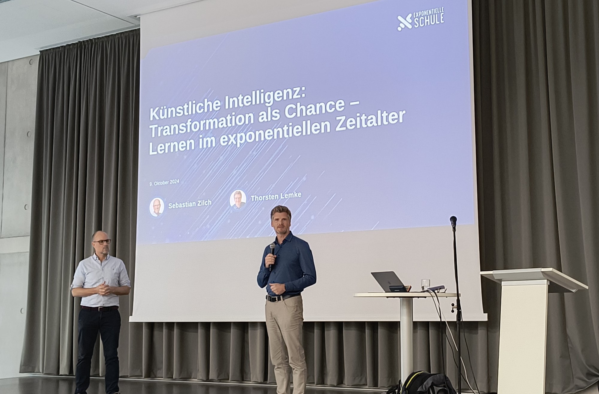 Einen wahrlich denkwürdigen Einblick in die Welt der Künstlichen Intelligenz bekamen die Kolleginnen und Kollegen der RSO und der August-Ganther-Schule. Sebastian Zilch und Thorsten Lemke von “Exponentielle Schule” gaben mit ihrem Vortrag “Transformation als Chance - Lernen im exponentiellen Zeitalter” interessante Impulse für die beiden Lehrerkollegien.