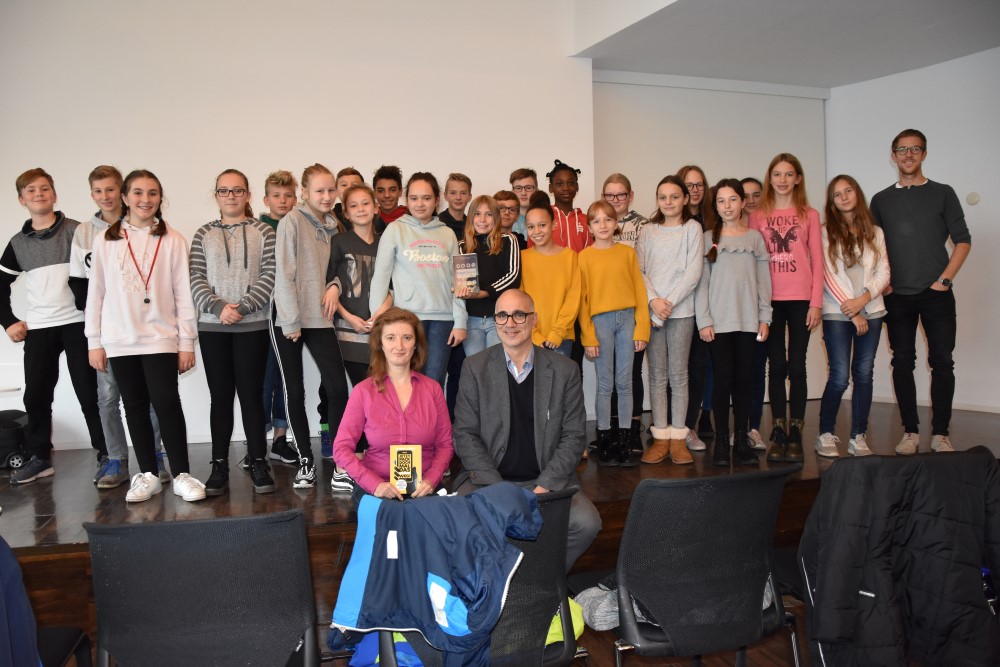 Als Vorbereitung auf die erste Themenwoche an der RSO, in der sich die 7. Klassen mit dem Thema „Mobbing“ auseinandersetzen, folgte die Klasse 7c der Einladung der Mediathek. Zu Gast war Thomas Feibel, der bereits über 50 Bücher, vorwiegend Jugendbücher, verfasst hat.