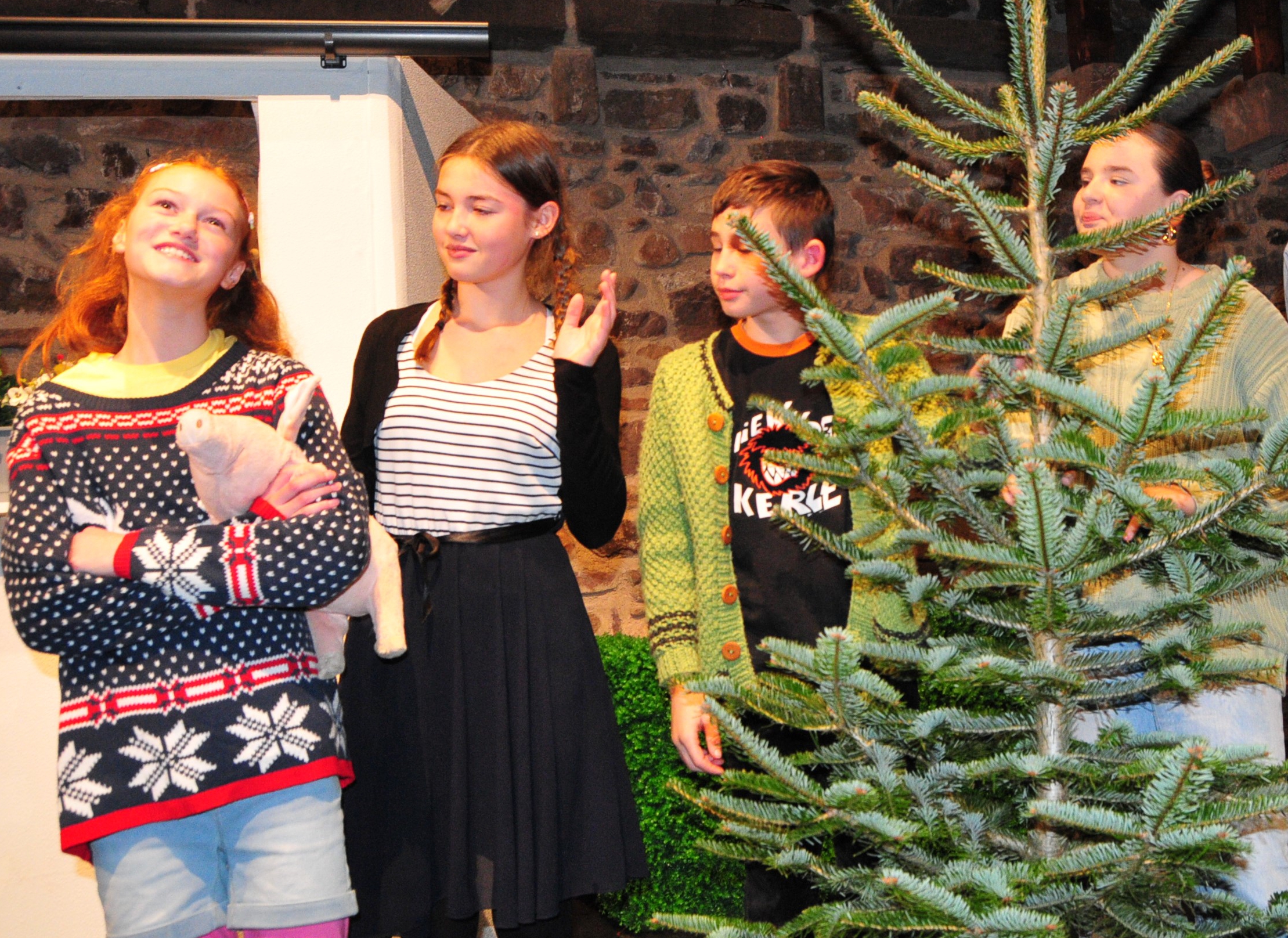Lotta kann fast alles, auch einen Weihnachtsbaum in letzter Minute besorgen? (von links: Matilda Roth, Vivien Urbaczka, Lea Schmidt, Jakob Ganter, David Kowalsky, Anne Kowalsky)