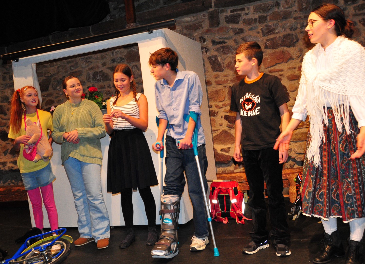 Voller Stolz begrüßten sie im vollen „freche hus“ nicht nur die Angehörigen der Aktiven, sondern auch Kollegium, Burgbühnler und ihr Dank galt allen Mitstreitern, besonders ihrem Motivator und Begleiter Stefan Kowalsky. Drei der beliebtesten Episoden um Lotta, Lindgrens Vorbild für starke, selbstbewusste Kinder, verkörpert das Theaterstück mit Pep und zugleich liebevoll in einem cleveren, wandelbaren Bühnenbild. Wichtige Kinderthemen wie Trotz, Wut und Geschwisterkonflikte werden behandelt, genauso wie zu lernen, sich zu vertragen und zu entschuldigen –und das mit sehr viel Spaß.