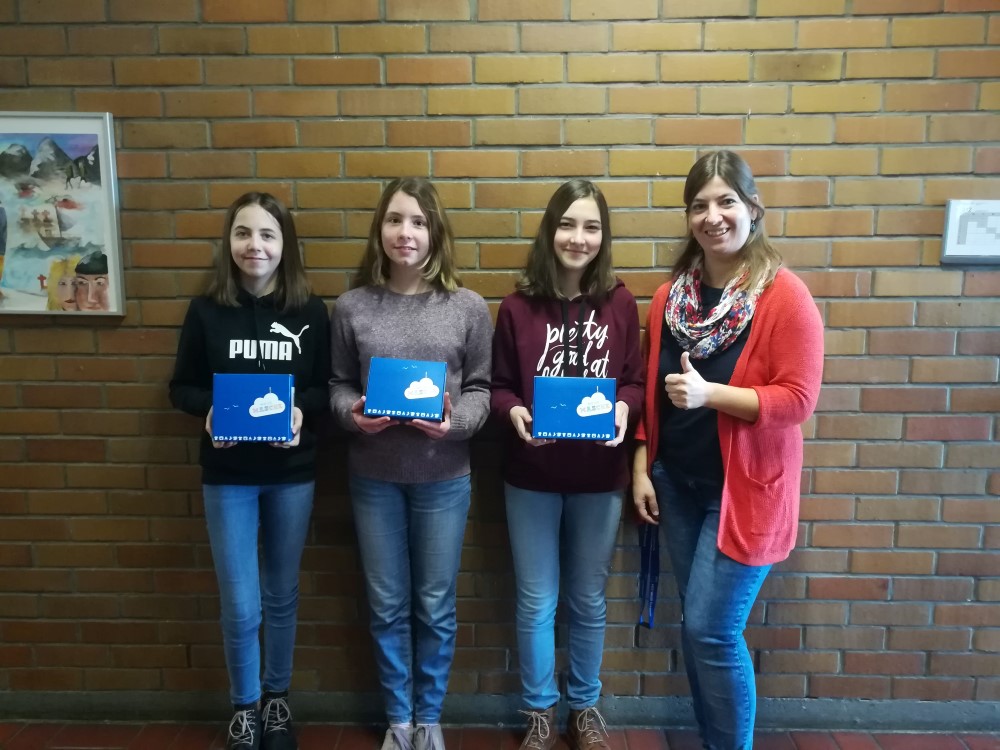 Isabel Jost, Emily Hurst und Lea Kuderer mit Klassenlehrerin Sarah Hohwieler