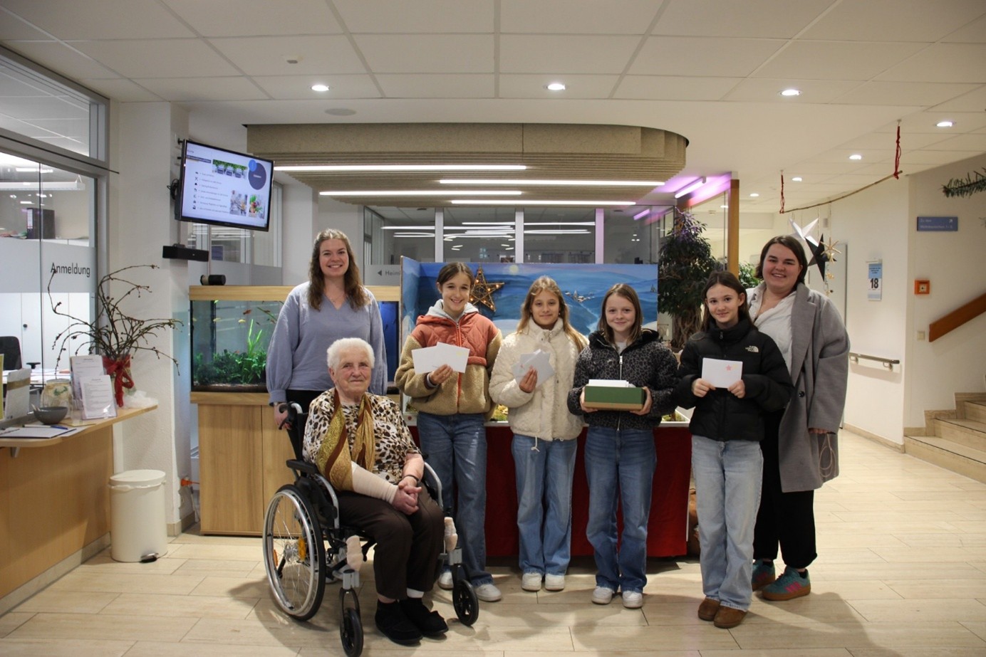 Die fertigen Weihnachtskarten wurden anschließend als Geschenk an die Altersheime übergeben. Dort sorgten sie bei den Bewohnerinnen und Bewohnern für große Freude. Viele freuten sich über die persönlichen Botschaften und die liebevolle Gestaltung der Karten, die zeigten, dass an sie gedacht wird.