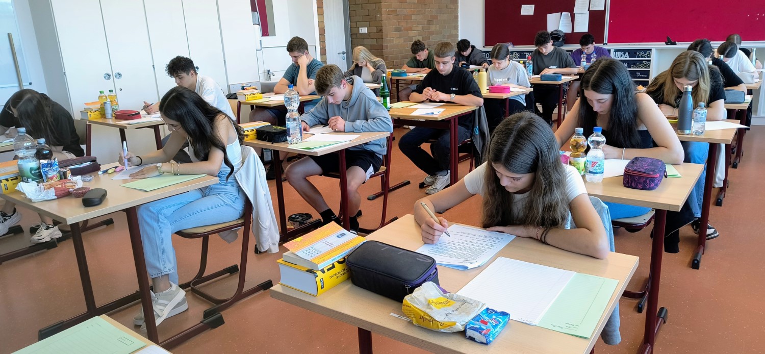Schülerinnen und Schüler der Klasse 10d brüten über ihren Deutschprüfungen
