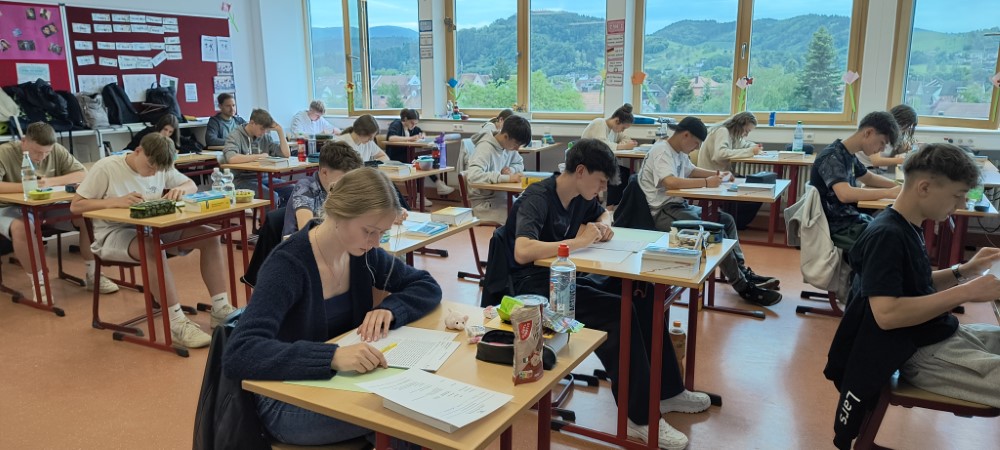 Schülerinnen und Schüler der Klasse 10c schreiben ihre Deutschprüfung.