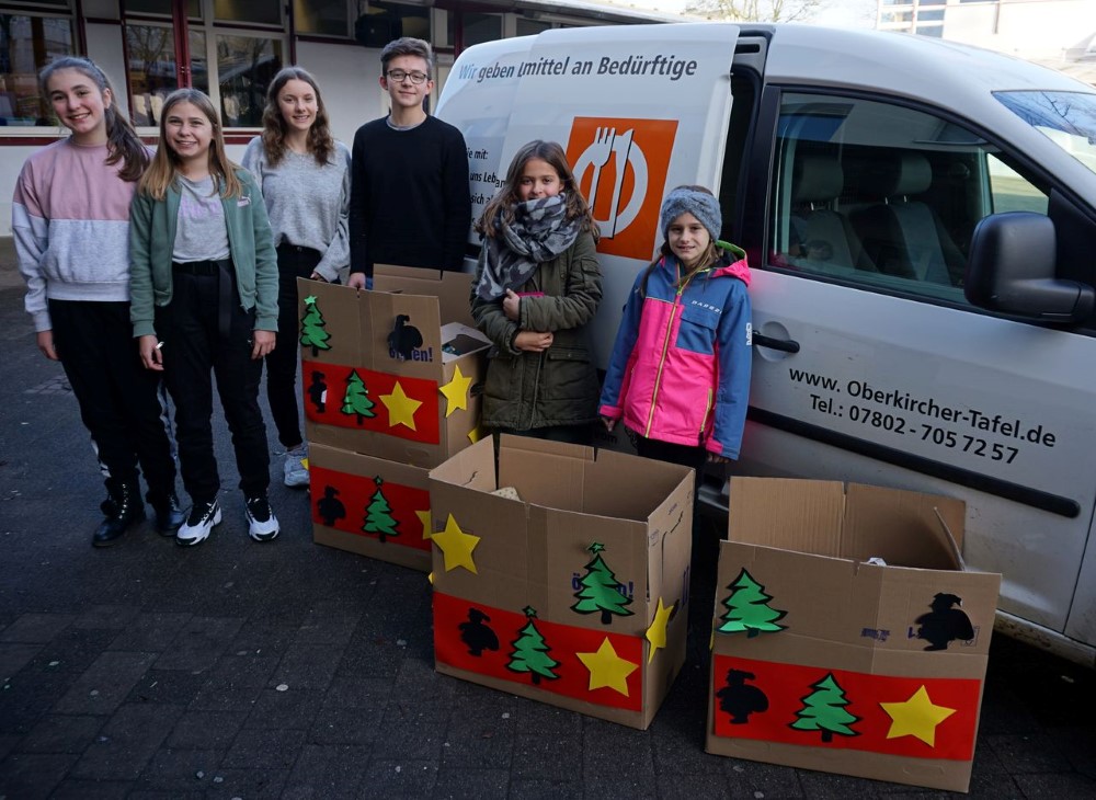Auf Initiative der Lehrerin Christiane Graab sammelte die Schülermitverantwortung (SMV) eine Woche lang kleine Geschenke von Ihren Mitschülern. Nachdem die Realschüler hörten, dass im Tafelladen in Oberkirch über hundert Kinder gemeldet sind, deren Eltern dort einkaufen, waren sie gerne bereit, hier etwas zu tun. Etwas dem zu geben, der weniger hat, war für sie selbstverständlich. So füllten sich in kurzer Zeit die Sammelkartons und den Schülersprechern und Organisatoren, welche diese Aktion betreuten, blieb nur noch, die Geschenke nach passendem Alter und Geschlecht zu sortieren, damit auch alles dort ankommt, wo es gebraucht wird und vor allem da, wo es eine kleine Freude bereitet.