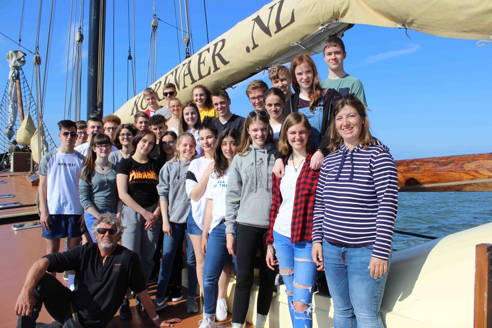 Die Klasse 10d mit Skipper Hans und Klassenlehrerin Sarah Hohwieler