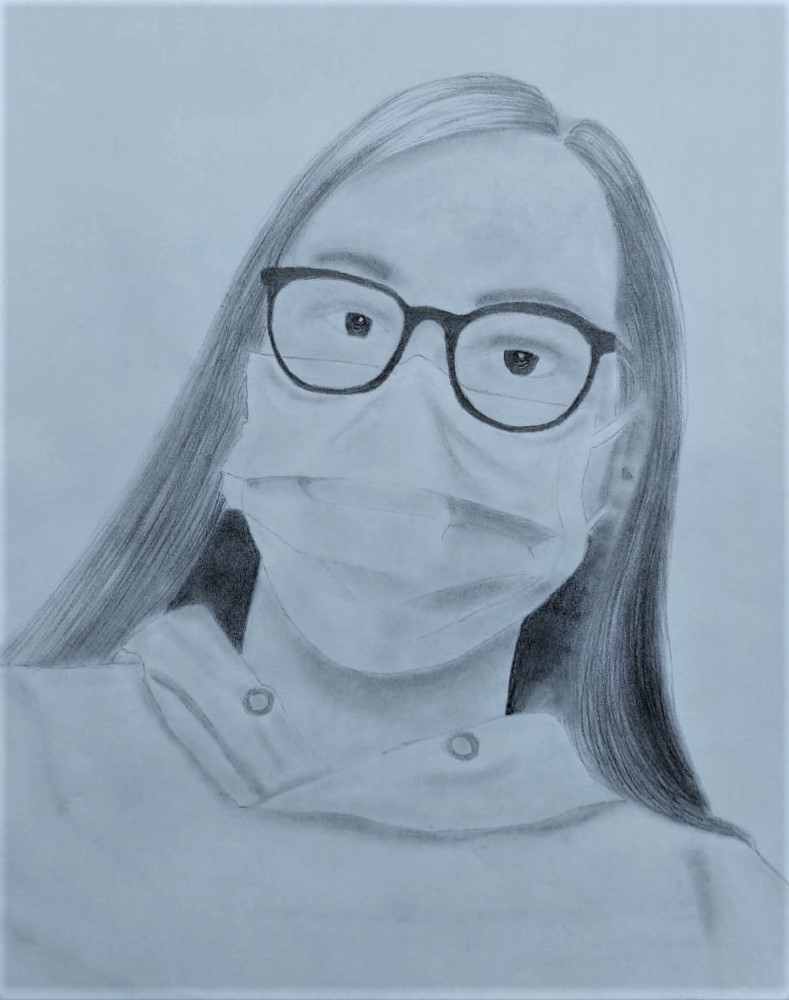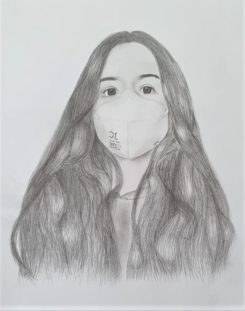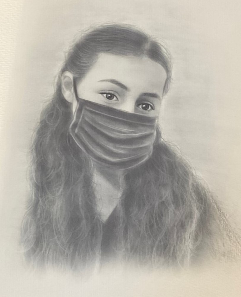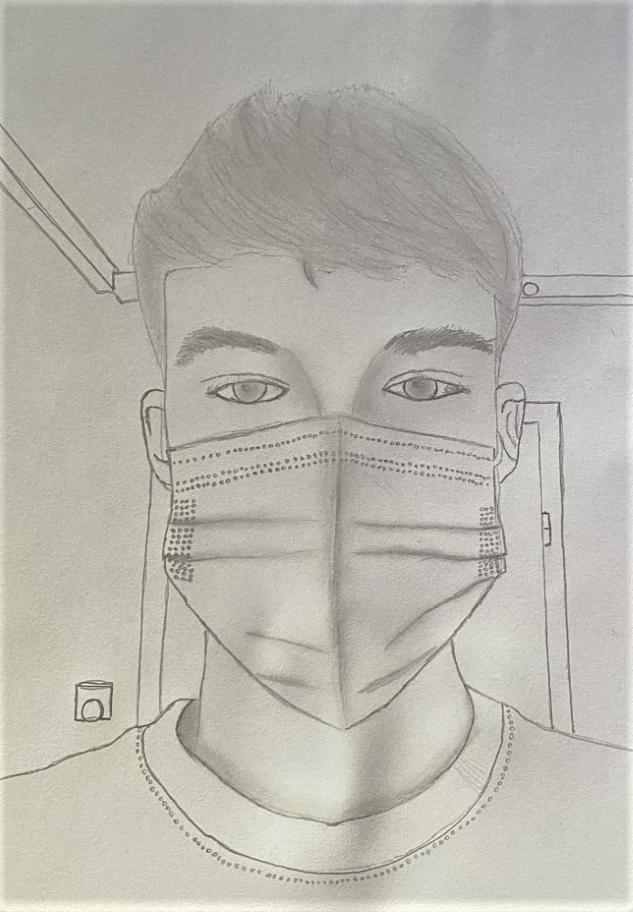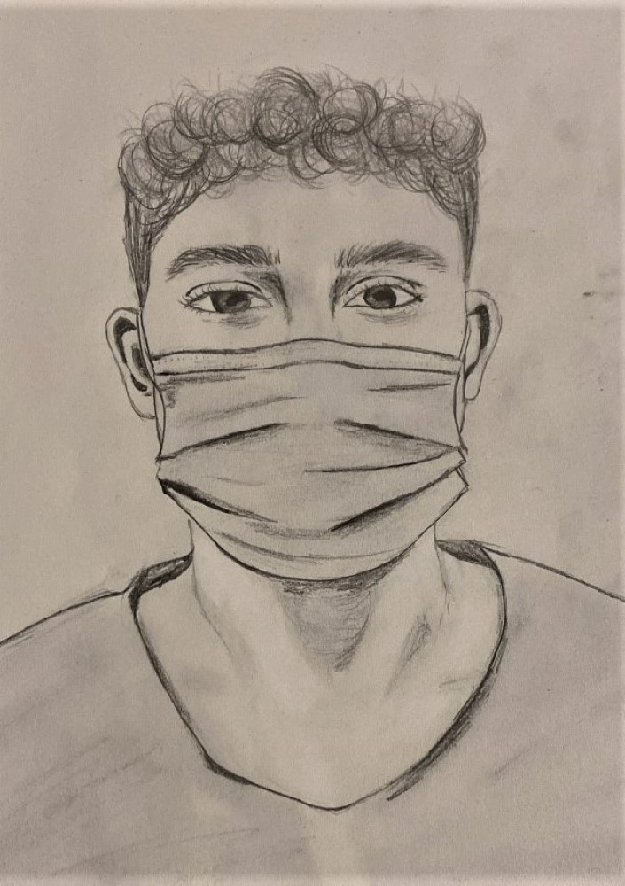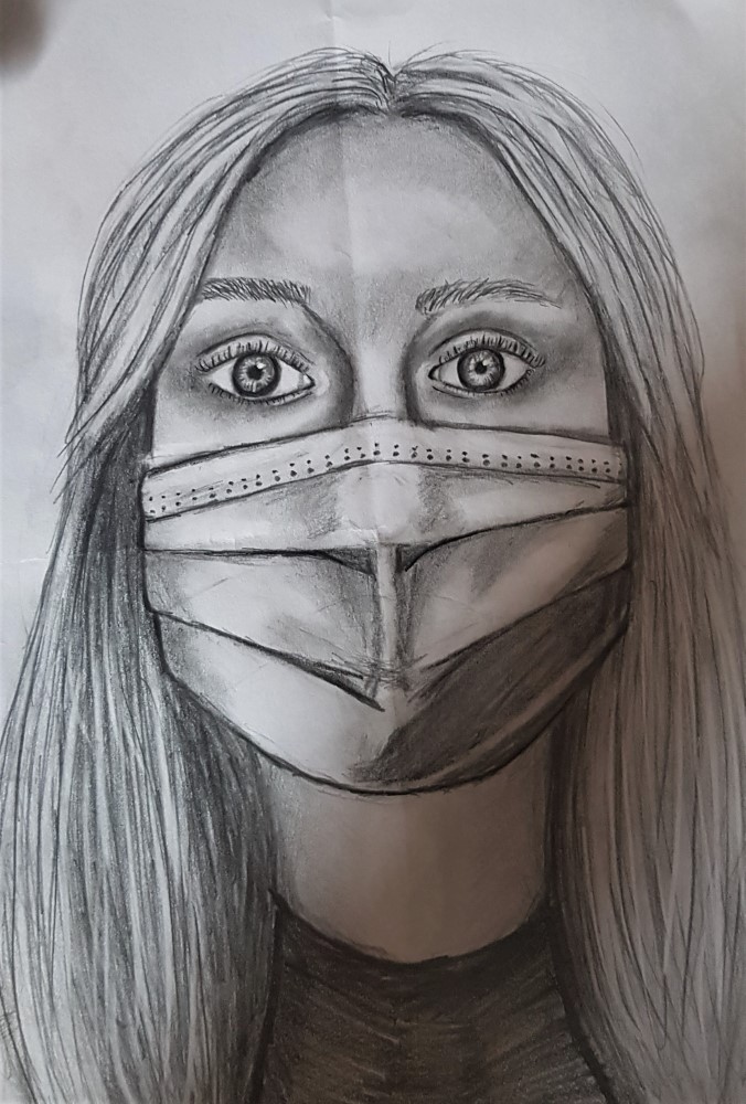 Die Selbstporträts wurden mit Bleistift gezeichnet. Der Mundschutz konnte nach Belieben auch in Farbe gestaltet werden.