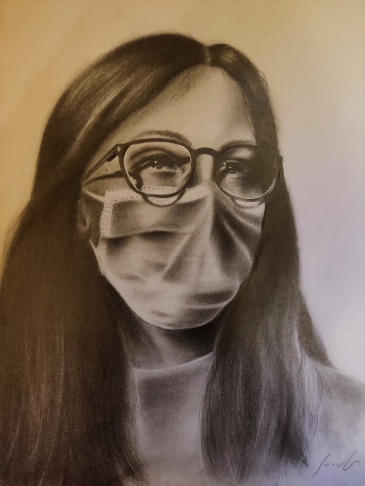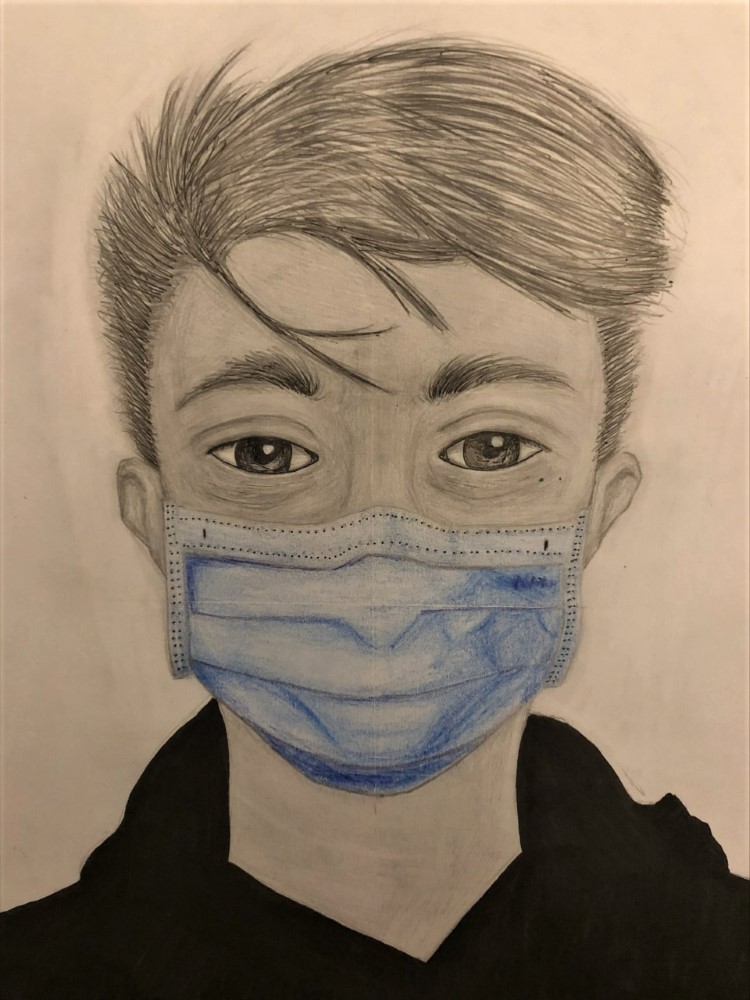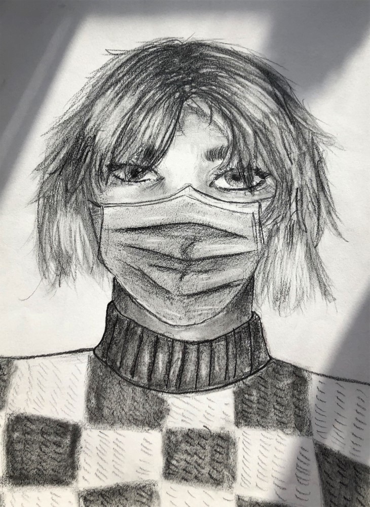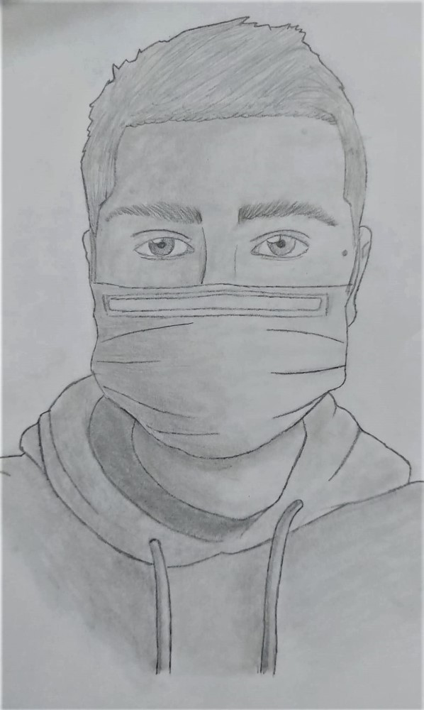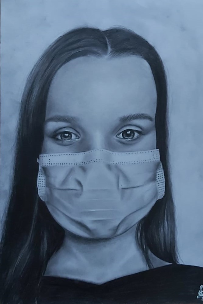 Als spätere Erinnerung an ihren Realschulabschluss während der Corona-Krise zeichneten die Schülerinnen und Schüler der 10ten Klassen im BK Fernunterricht ein Selbstporträt mit Mundschutz.