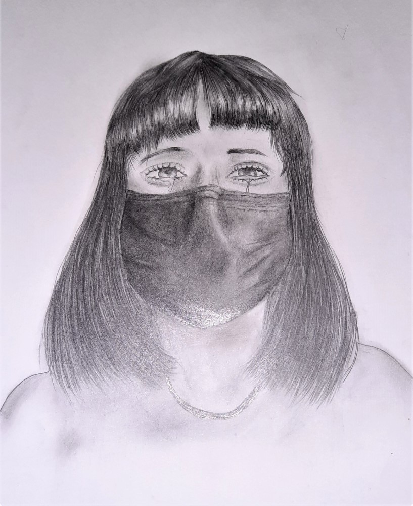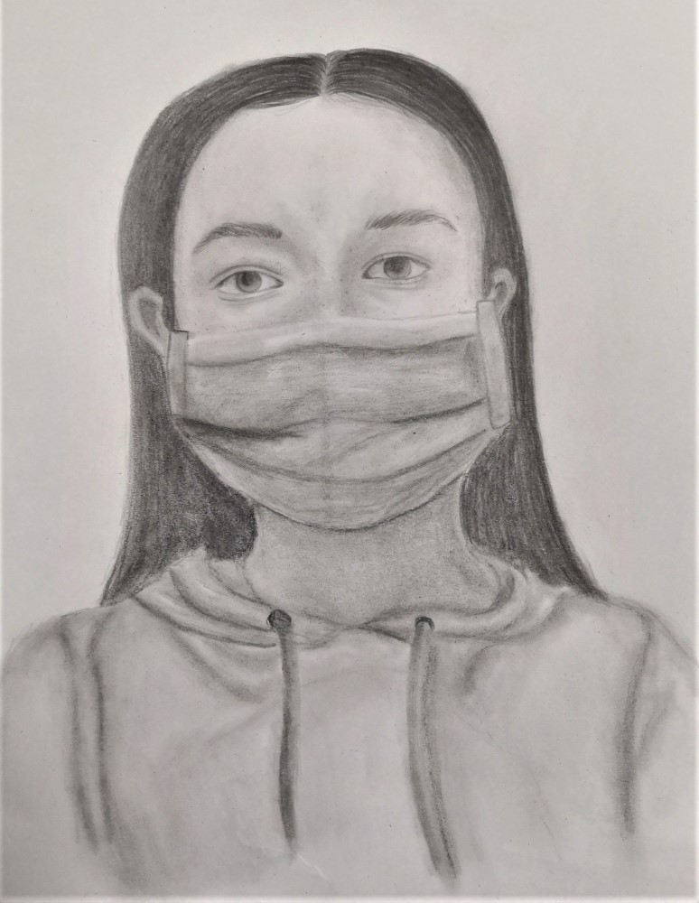 Die Selbstporträts wurden mit Bleistift gezeichnet. Der Mundschutz konnte nach Belieben auch in Farbe gestaltet werden.