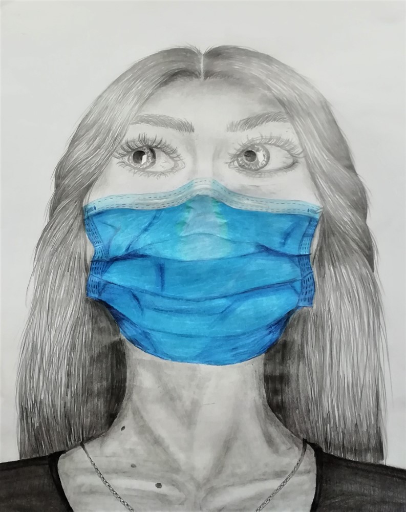 Als spätere Erinnerung an ihren Realschulabschluss während der Corona-Krise zeichneten die Schülerinnen und Schüler der 10ten Klassen im BK Fernunterricht ein Selbstporträt mit Mundschutz.