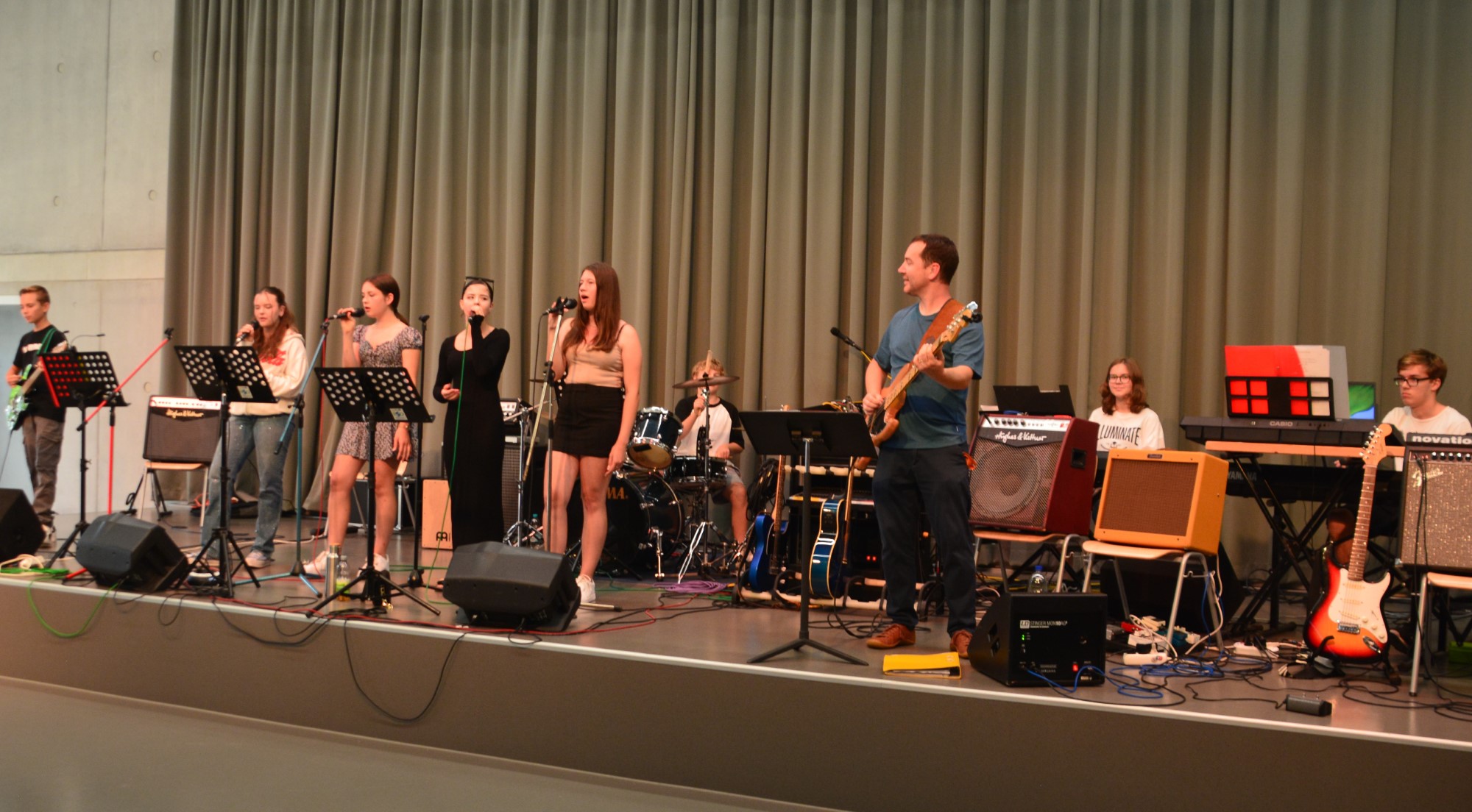 Zuvor hatte die zehnte Auflage des beliebten Konzerts „Summer Night Jam“ viele Schülerinnen und Schüler, Ehemalige, Eltern und Lehrkräfte begeistert. Die Rockband unter Leitung von Matthias Frietsch und die RSO Lehrerband sorgten für ausgelassene Stimmung in der Mensa.