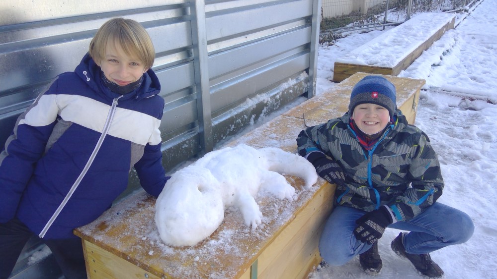 Nach diesem Motto stellten die Schülerinnen und Schüler der Klasse 5d Schneeskulpturen her, anstatt den Videounterricht im Fach Kunst abzuhalten. Beim Bau von kleinneren aber auch riesigen Schneegebilden, schaffte das Projekt zuweilen auch einen Ausgleich für den entfallenen Sportunterricht.